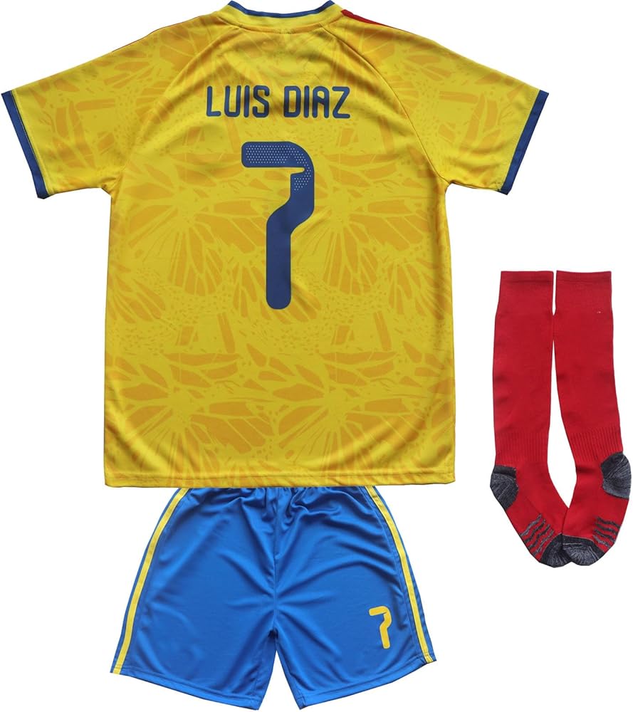WINKIZIL Colombia Diaz Home #7 Football Soccer Kids Jersey Shorts Socks Set Youth Sizes