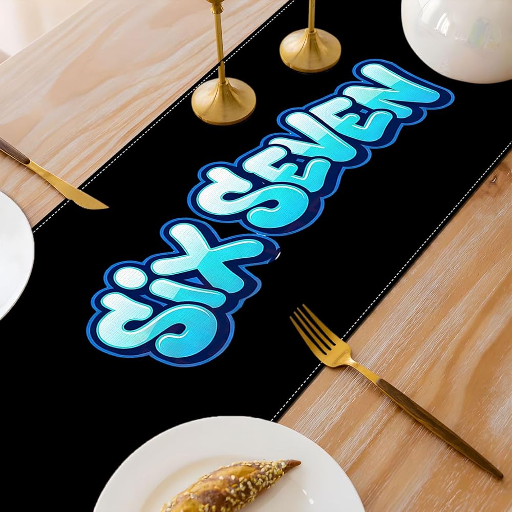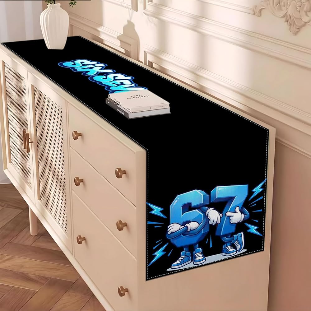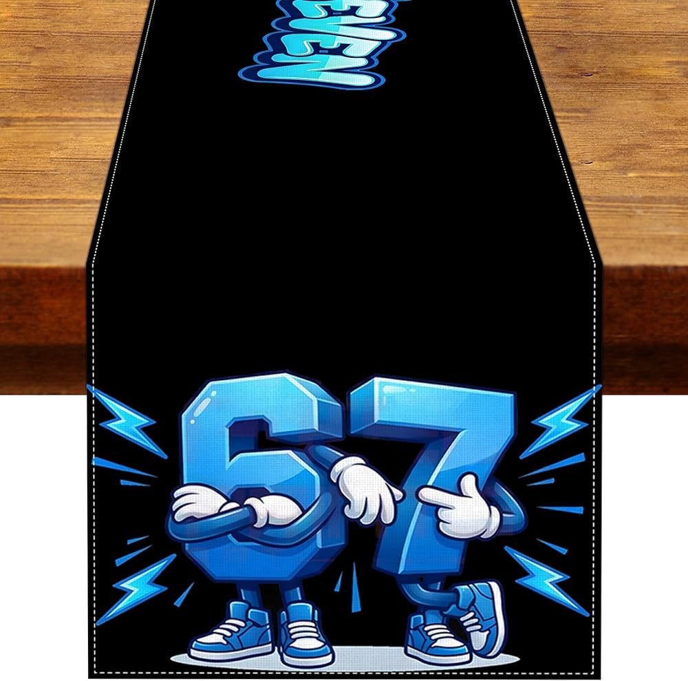 A Table Runner for 67 Meme Birthday Party Decoration.