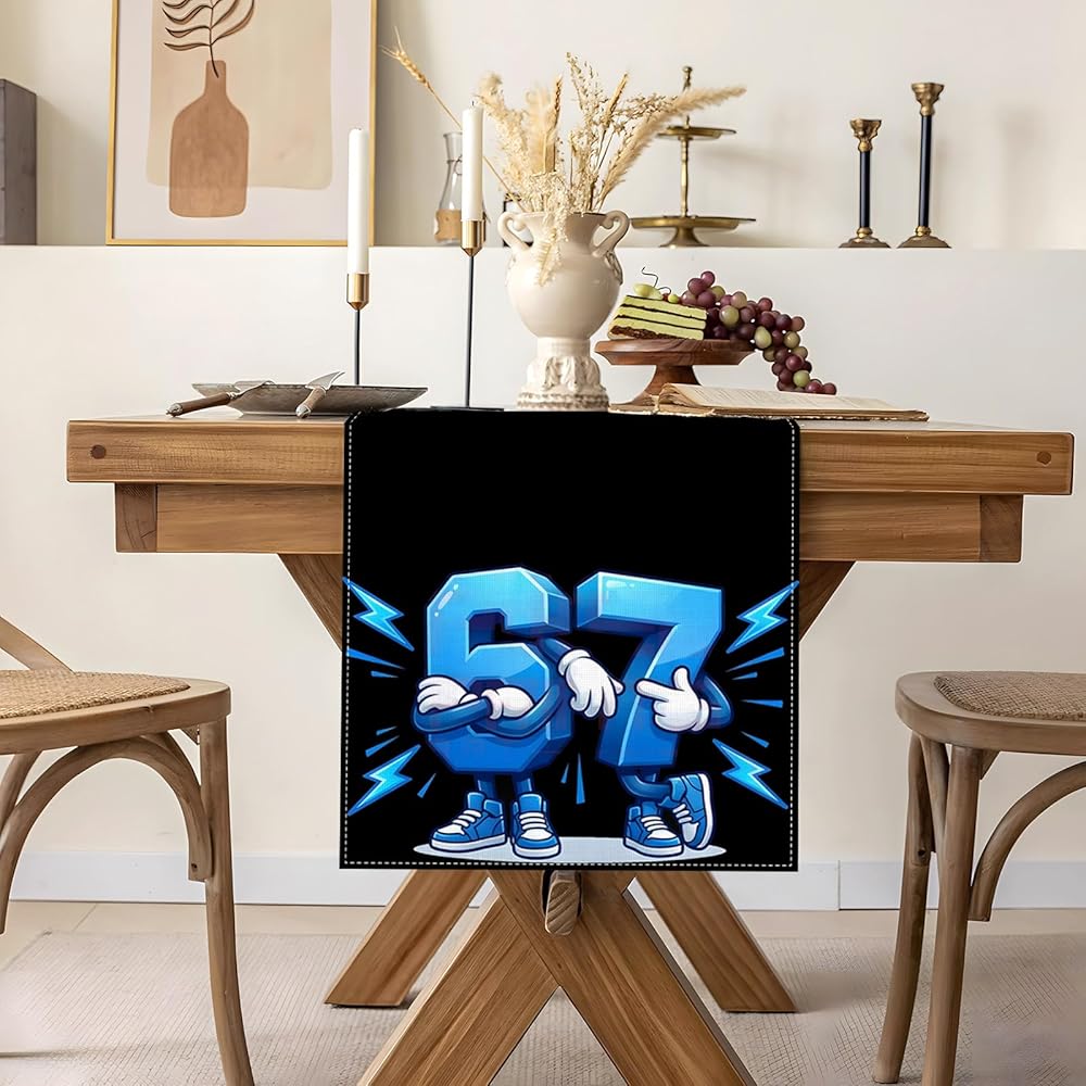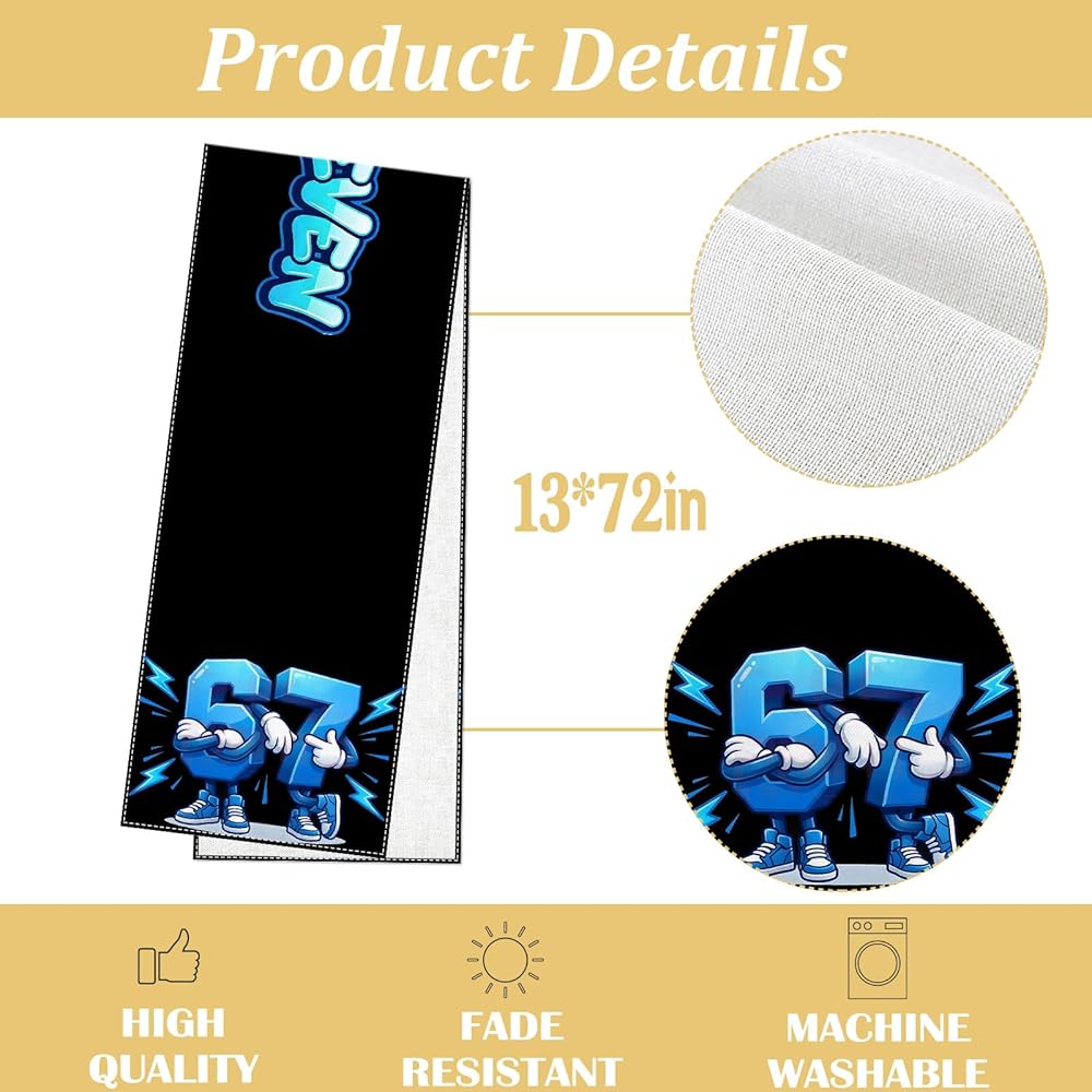 Applicable occasions: This table runner is suitable for 67 meme birthday party, indoor and outdoor dining tables, kitchen island, camping decorations, and daily use.