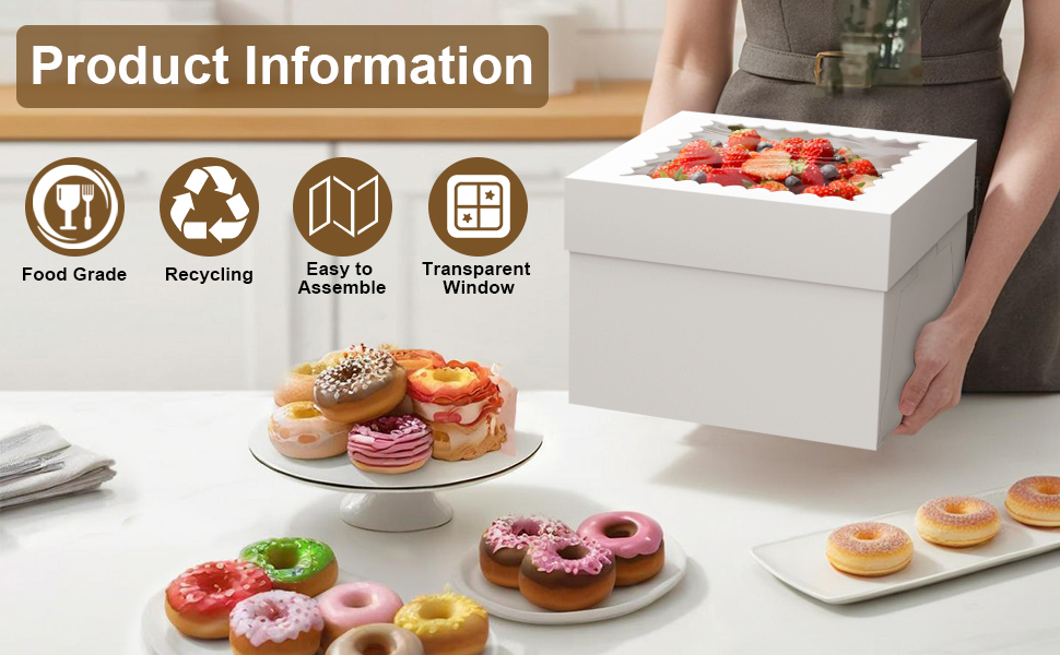 1️⃣ للخبز المنزلي والاحتفالات العائلية، صناديق كعك متينة مقاس 10 بوصات مع نافذة - مصممة للخبازين المنزليين وأمهات الخبز ومحبي الكعك الذين تصنعهم بنفسك، صناديق الكعك هذه مقاس 10x10x8 مثالية لتعبئة كعك عيد الميلاد وكعك الاحتفالات العائلية ومشاريع الخبز في عطلة نهاية الأسبوع. يشتمل كل صندوق على لوح كعكة مطابق لدعم الكعك المزخرف، مع نافذة شفافة لعرض الحلوى محلية الصنع بفخر عند تقديمها كهدية للأصدقاء أو إحضارها إلى حفلة.