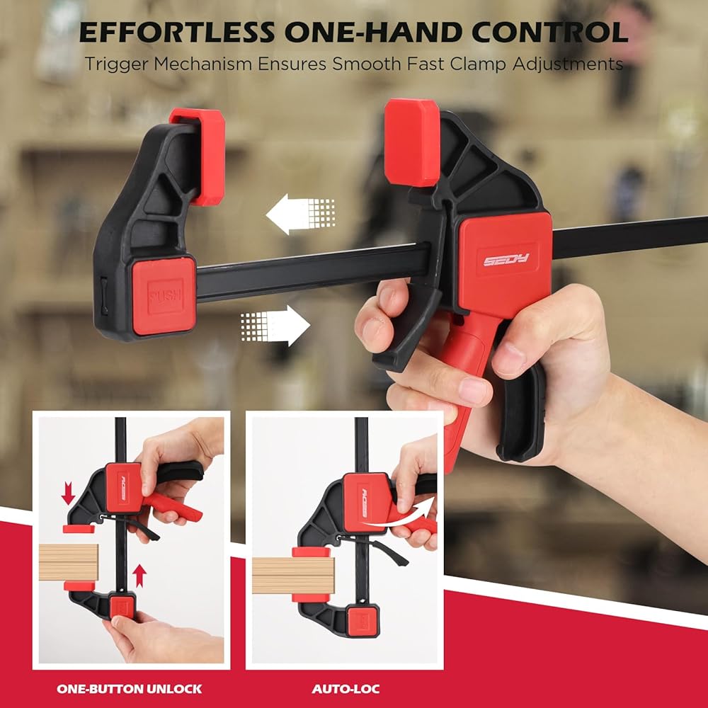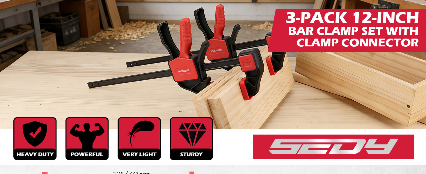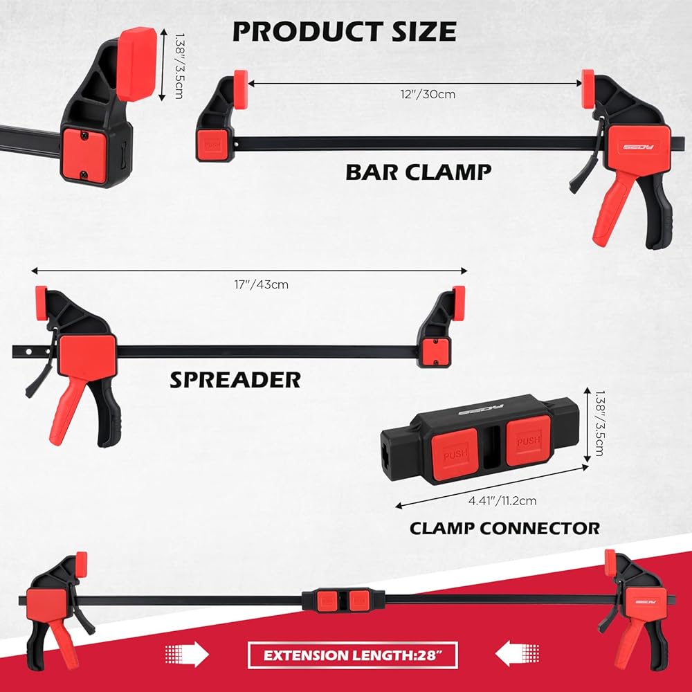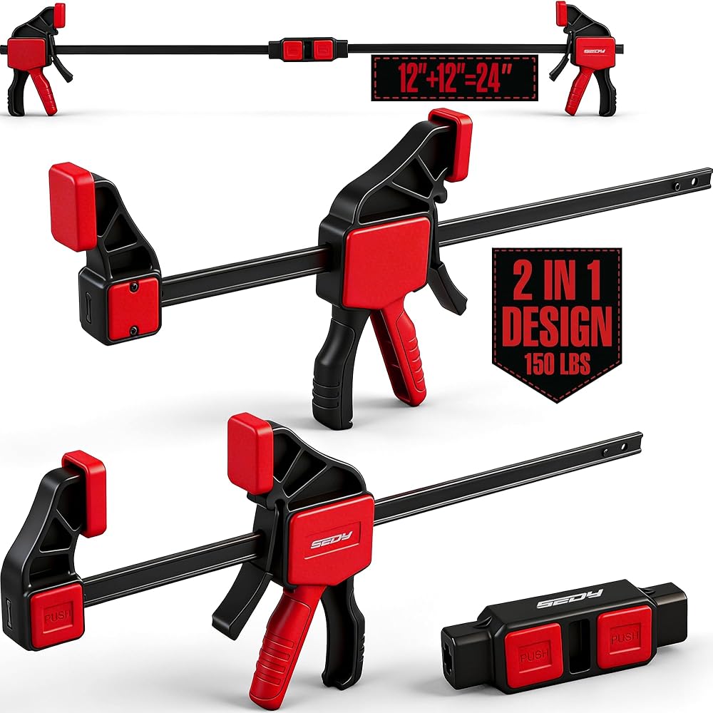 3 قطع من المشابك الشريطية مقاس 12 بوصة للأعمال الخشبية مع موصل المشبك، مشابك خشبية سريعة التحرير مقاس 12 بوصة مع حد تحميل يصل إلى 150 رطلًا، مجموعة مشابك الزناد، مشابك/موزعة بيد واحدة مثالية لمشاريع الأعمال الخشبية التي تصنعها بنفسك
