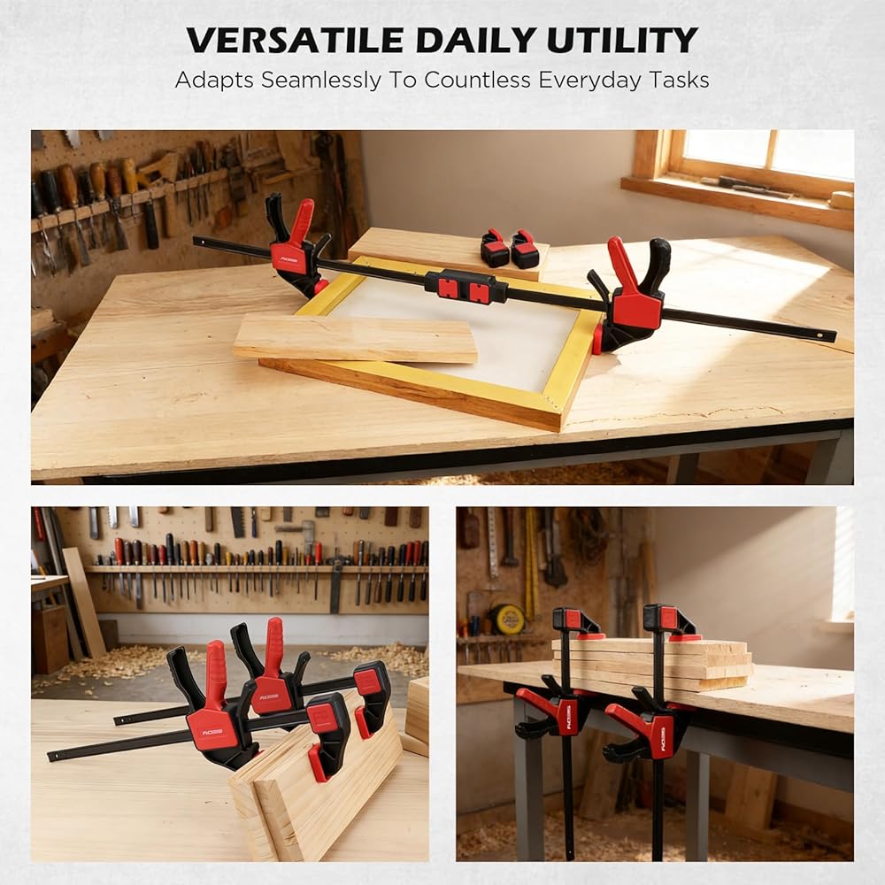 تثبيت قوي - توفر القضبان الفولاذية المصممة جيدًا والقضيب المقوى ما يصل إلى 150 رطلاً من قوة التثبيت المستقرة، مما يوفر قبضة آمنة وغير قابلة للانزلاق للأعمال الخشبية واللصق والتأطير والمشروعات العامة التي تصنعها بنفسك.