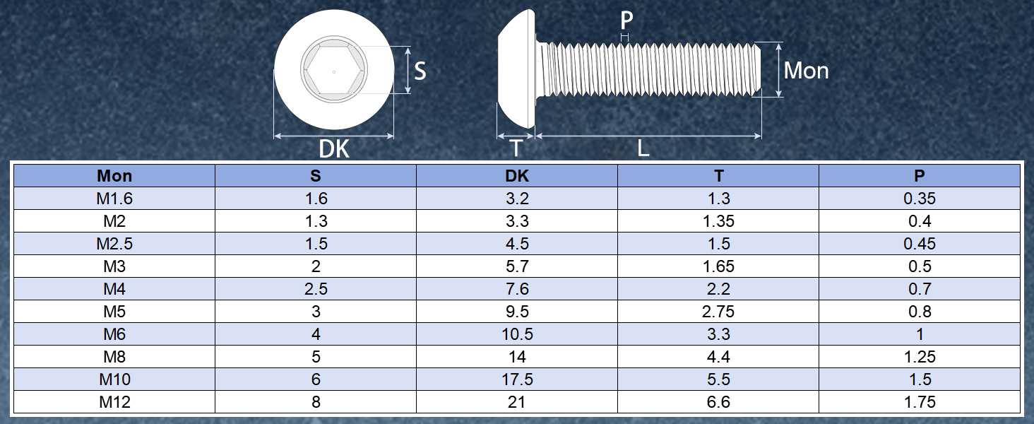 4- التطبيقات - تتميز براغي غطاء مقبس رأس الزر برأس قبة مستديرة منخفضة المستوى توضع فوق سطح المادة دون الحاجة إلى ثقب غاطس. يوفر تصميمها مظهرًا أكثر سلاسة وأقل من أنماط رؤوس المقبس القياسية. تُستخدم هذه البراغي في معدات اللياقة البدنية والدراجات والإلكترونيات والأثاث حيث يلزم وجود أداة تثبيت منخفضة المستوى. يقاوم هيكل الفولاذ المقاوم للصدأ 304 الصدأ في البيئات التي قد يتآكل فيها الفولاذ الكربوني غير المطلي.