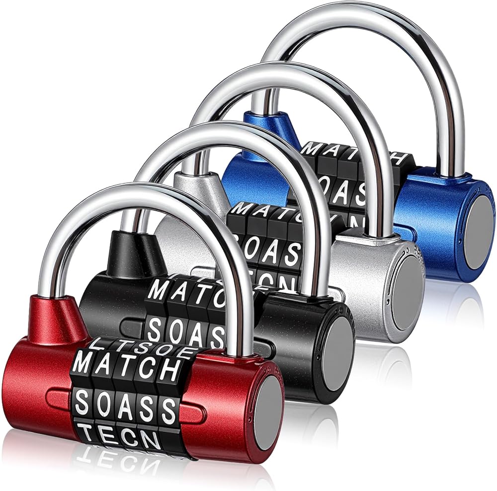 Product Name: 4 Pcs 5-Letter Combination Padlocks (Black, Silver, Red, Blue)