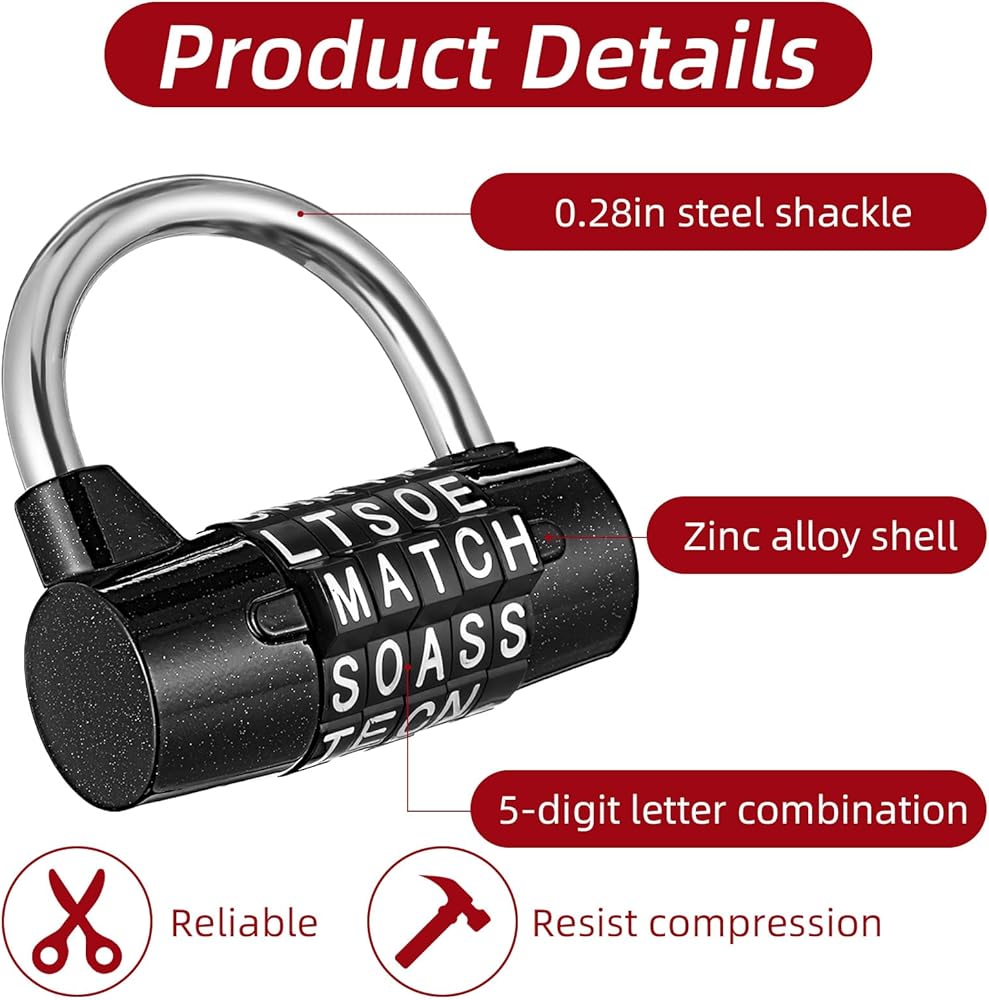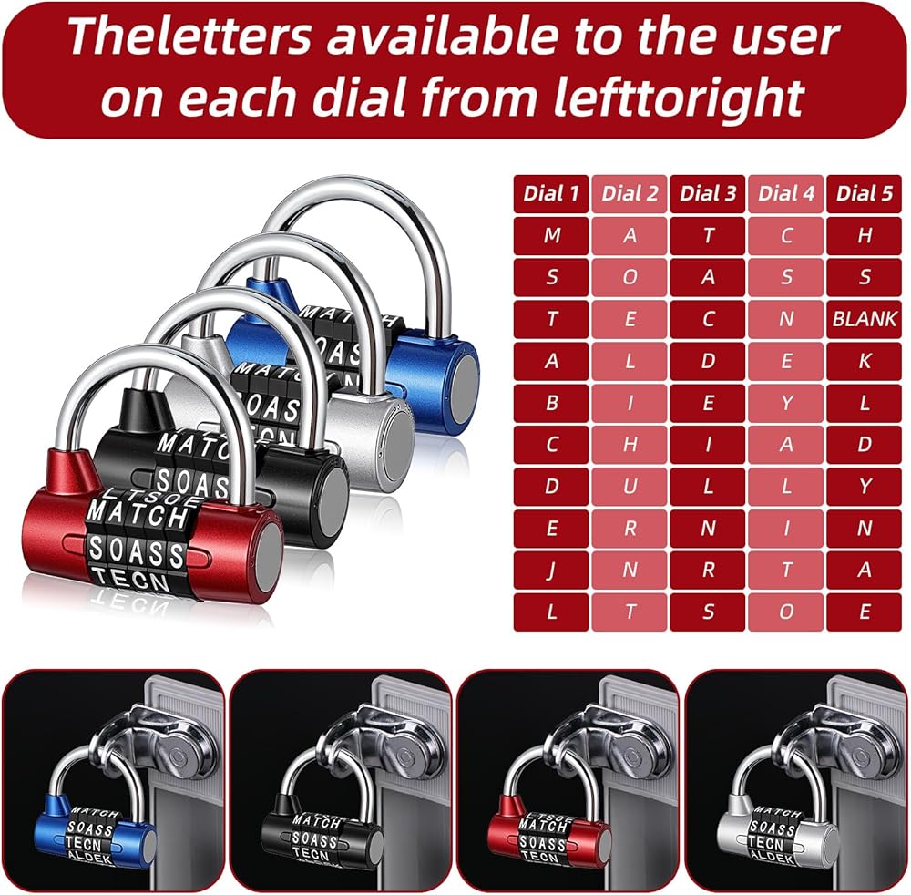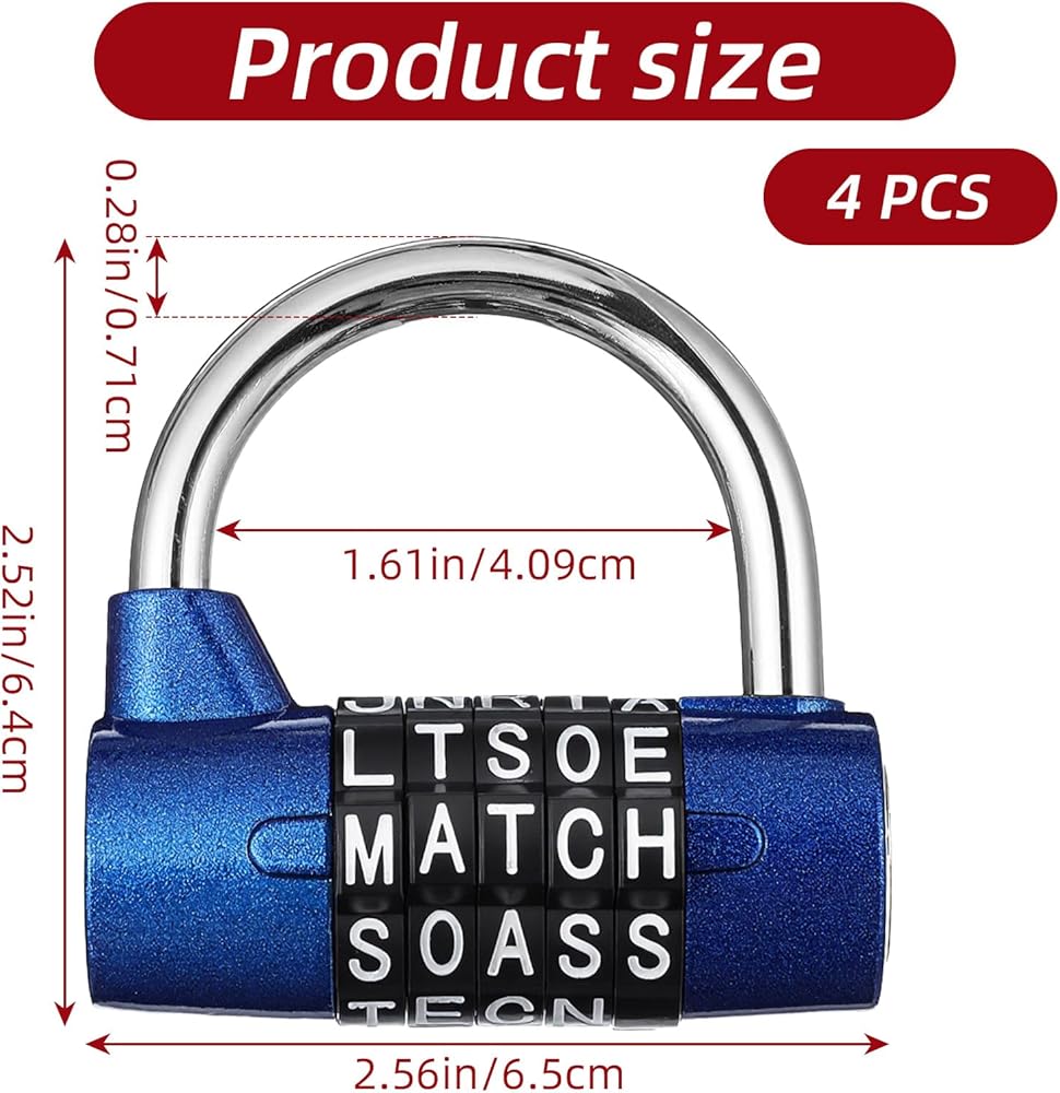 Contents: 4 Pcs 5-Letter Combination Padlocks