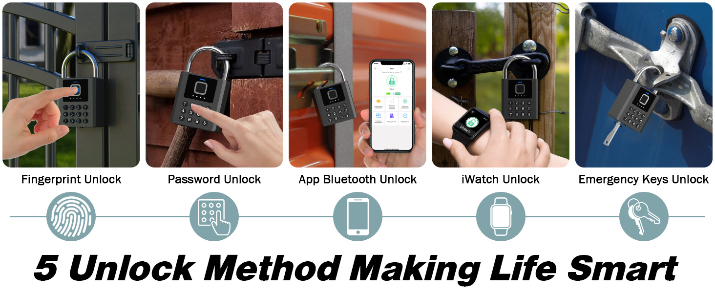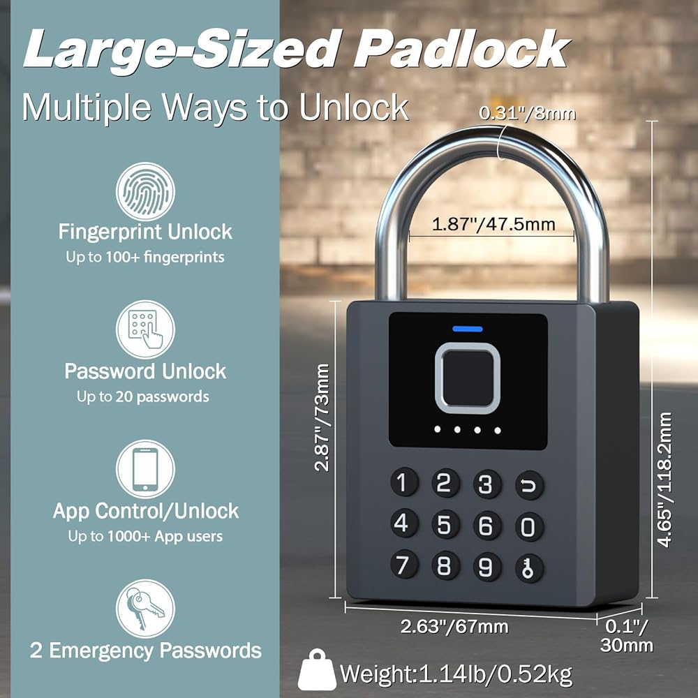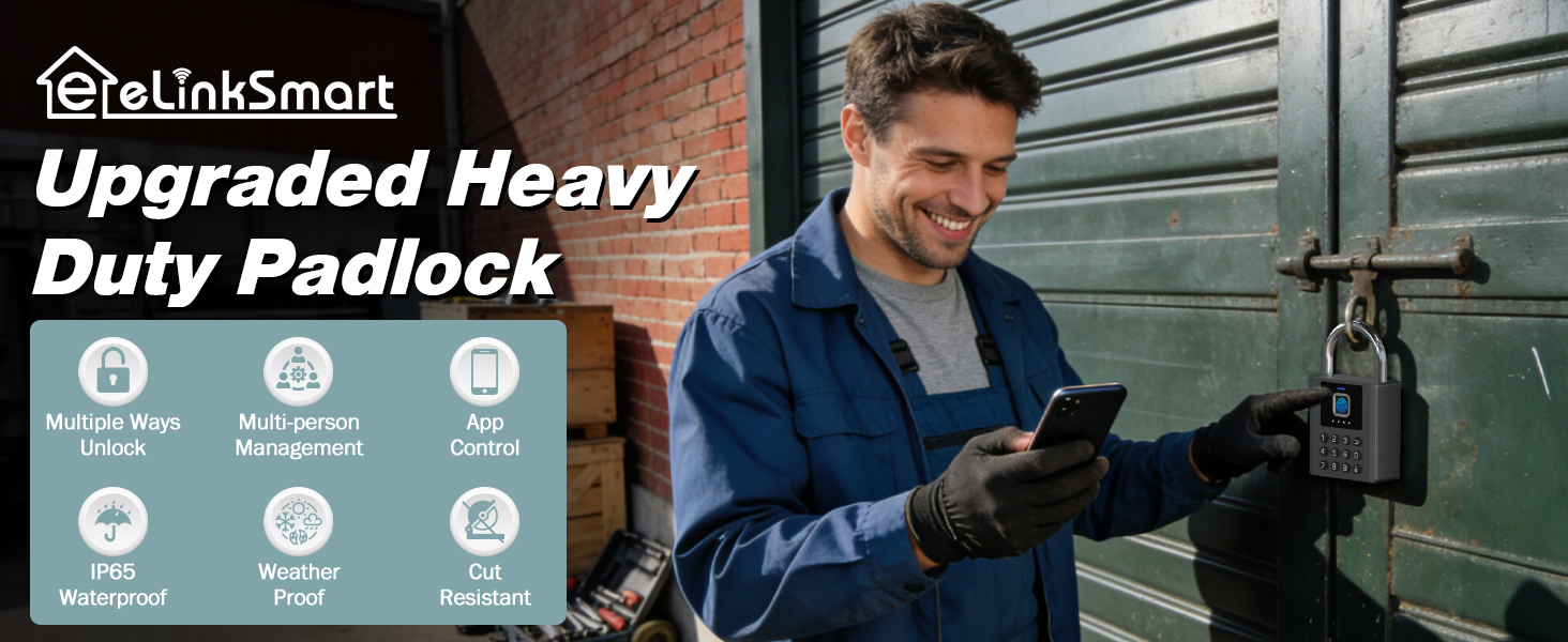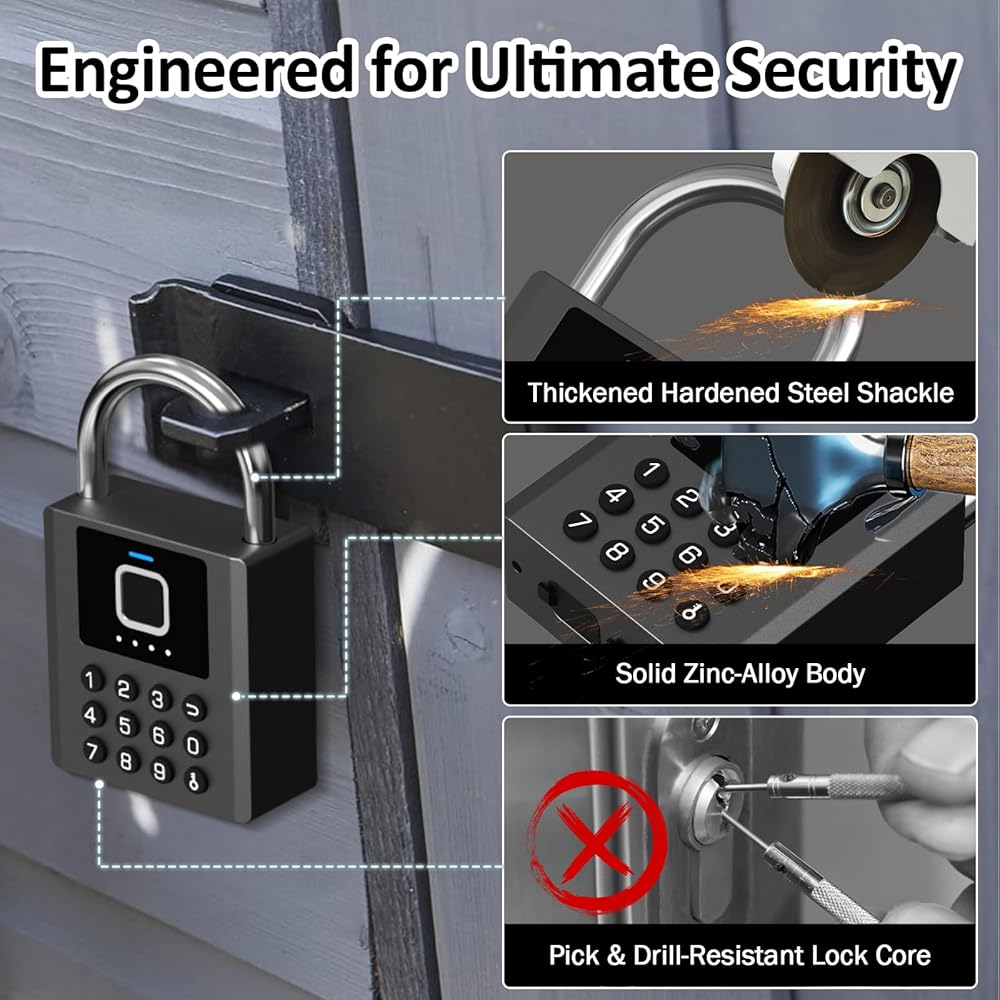 eLinkSmart قفل بصمة الإصبع في الهواء الطلق، قفل ذكي عالي التحمل مع ترخيص عن بعد لتطبيق بلوتوث، كلمة مرور مكونة من 9 أرقام ورمز مؤقت، IP67 مقاوم للطقس لخزانة شاحنة سياج بوابة السقيفة