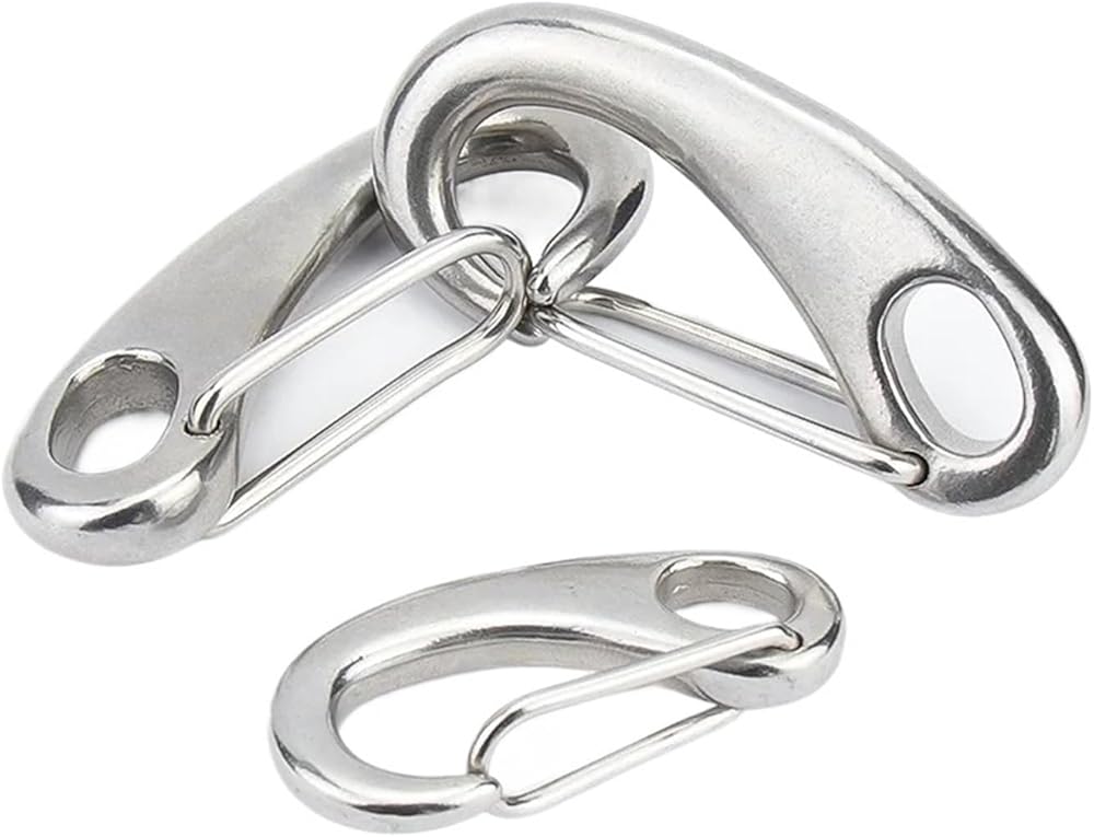 SFCHEN Length 30/50/70/100mm 304 Stainless Steel Egg Shape Spring Snap Hook Clip Wire Rope Quick Link Carabiner Boat Marine