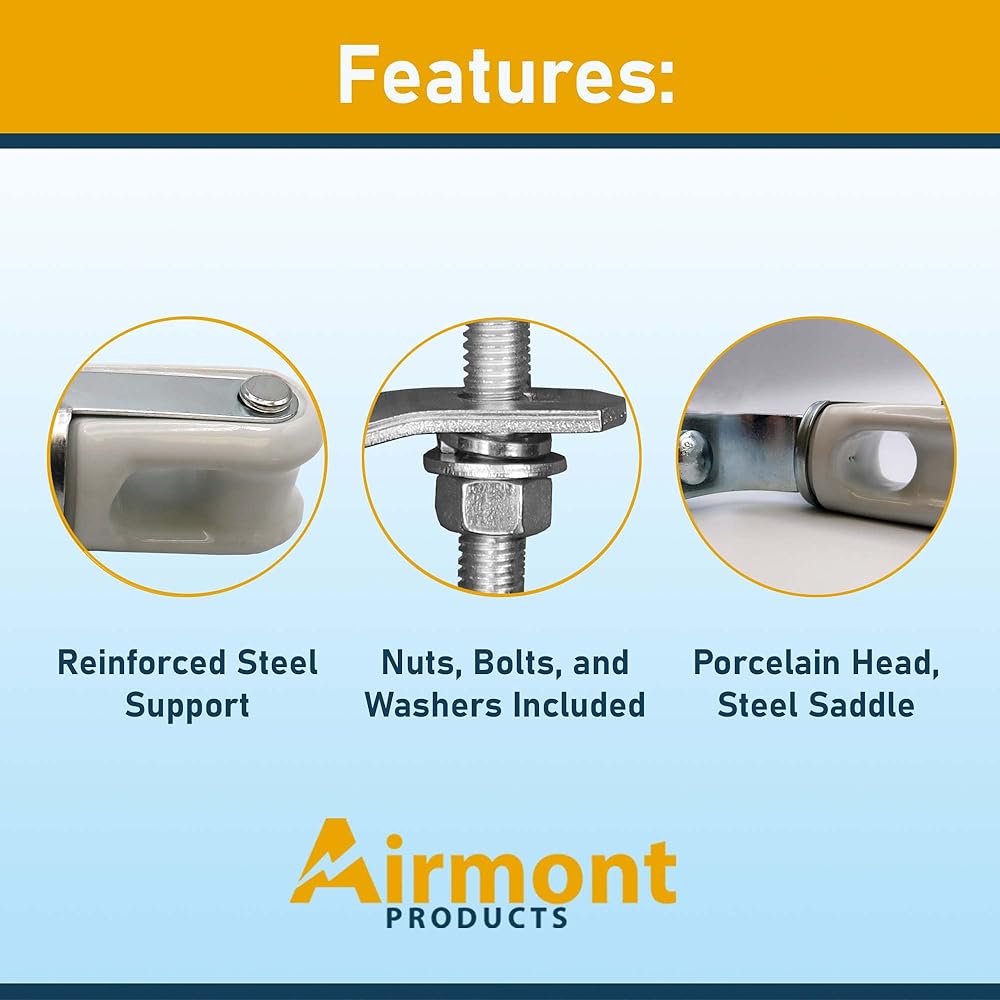 AP-10921، حامل أسلاك من البورسلين شديد التحمل وقابل للتعديل، سرج من الفولاذ المقوى، مشبك فولاذي قابل للتعديل يناسب أي أنبوب أو عمود، رأس سيراميك للكابلات أو الأسلاك كعازل