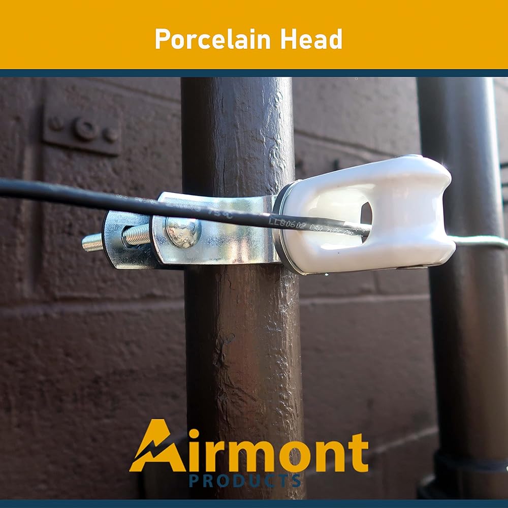 الرأس - يتم تثبيت حامل السلك هذا على أنبوب باستخدام شريط تثبيت، ثم يتم تضييقه حول القناة ويوفر ملحقًا من البورسلين لانخفاض الخدمة الكهربائية. كما أنها تتميز بقناة فولاذية معززة على طول جانب الرأس الخزفي لضمان المتانة عند القيام بالتطبيقات الثقيلة.