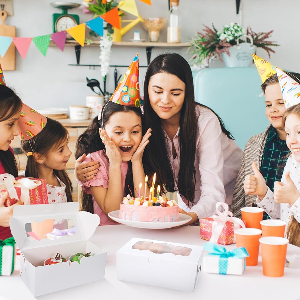 【Versatile Use】Perfect for a variety of occasions, these cookie boxes with window are suitable for weddings, bridal showers, holiday celebrations, and bakery sales. They accommodate a wide range of treats, including chocolate-covered strawberries, mini cupcakes, and donuts. Their elegant design also makes them ideal for creative gift-giving, ensuring your presents stand out.