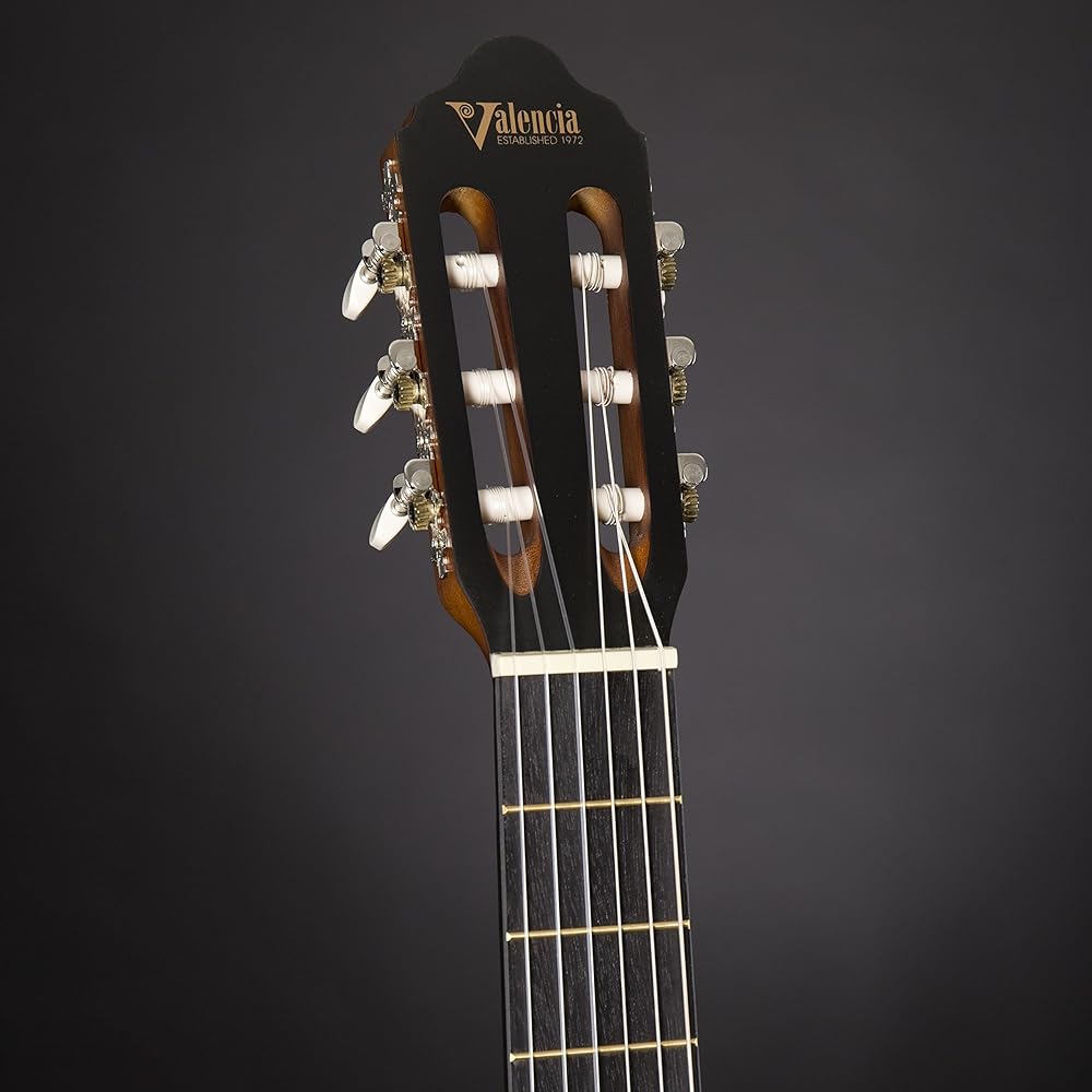 The Series 200 range has been expanded by the introduction of our newly developed ?Hybrid?, Thin Neck models. The Hybrid is especially designed to accommodate the smaller hands of some beginner players. The full size VC204H features a 45mm neck width (at nut) with 650mm (25 5/8?) scale length on a standard size body, while the VC203H has a 42mm nut with 580mm (22 7/8?) scale length on a 3/4 size body. For superior stability and strength, the necks of these models feature two central, reinforcing strips of teak installed along the entire neck length. All Series 200 models feature an arched back for increased tonal response and projection, a unique attribute amongst guitars in this price range and particularly within all 3/4 size guitars on the market. The range also includes left hand models in natural finish only.