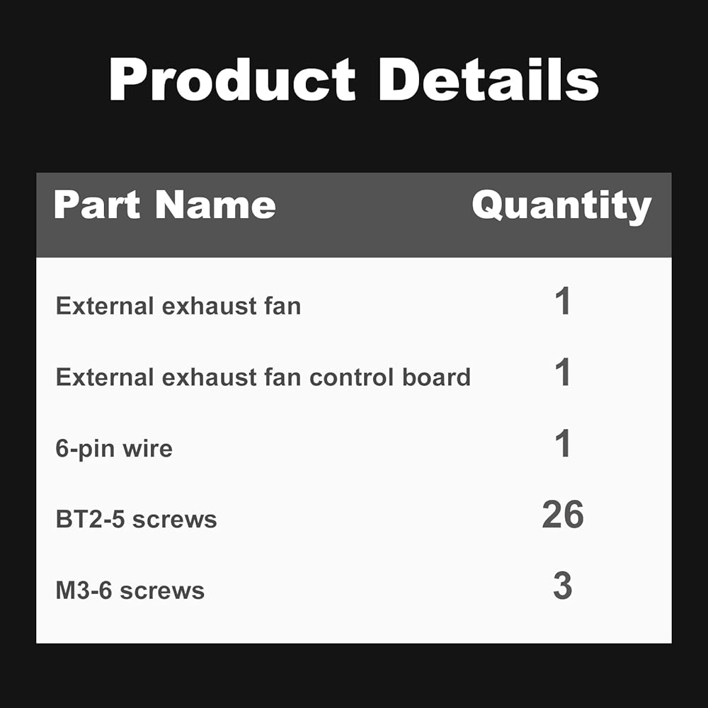 Tailored for Bambu Lab P2S 3D printers, this External Exhaust Fan Kit solves strict exhaust needs by routing fumes outdoors/designated areas. It features hassle-free installation using the original rear panel (no replacement needed) with included screws and a downloadable adapter. Smart control auto-starts for low-temp filaments (PLA/TPU/PVA), preserves heat for high-temp prints (ABS/PA), and auto-purifies post-print. Quiet, sealed design comes with essential tools; works with updated Bambu software. Backed by Bamboo lab wiki guides and support—clean, easy 3D printing.