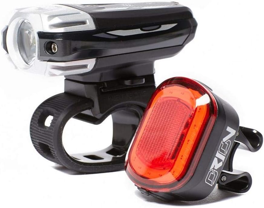 For the cyclists pushing through the dark winter nights and all the way home, the Moonlights Meteor C1 Orion Set provides front and rear improved visibility with rechargeable batteries and multiple flash modes.Front Light:Light sensitive auto ON/OFF- To help you to conserve battery power when the light is not neededWaterproof to IPX 4Light Memory Mode - Stay on the same mode even when you turn the light offLumen and Run Time are tested under ANSI FL-1 StandardDaylight Flash Mode - Making a cyclist more visible during the daytimeBattery capacity and charging indicatorMode1 - 450lm - 2.00hrMode2 - 180lm - 4.45hrMode3 - 100lm - 8.45hrFL1 - 60lm - 62.00hrFL2 - 200lm - 22.00hrDay FL - 450lm - 65.00hrSOS - 32.00hrRear Light:Built-in reflectorLight mode memoryQuick release magnetic mountLow battery, charging & fully charged indicatorAutomatic fully charged cut-off system Side visibilityWater resistant (IPX5)Recharge time: 2 hrsMode1 - 10lm - 5.30hrMode2 - 20lm - 2.30hrFL1 - 10lm - 53.00hrFL2 - 20lm - 26.00hrDay FL - 50lm - 30.00hr