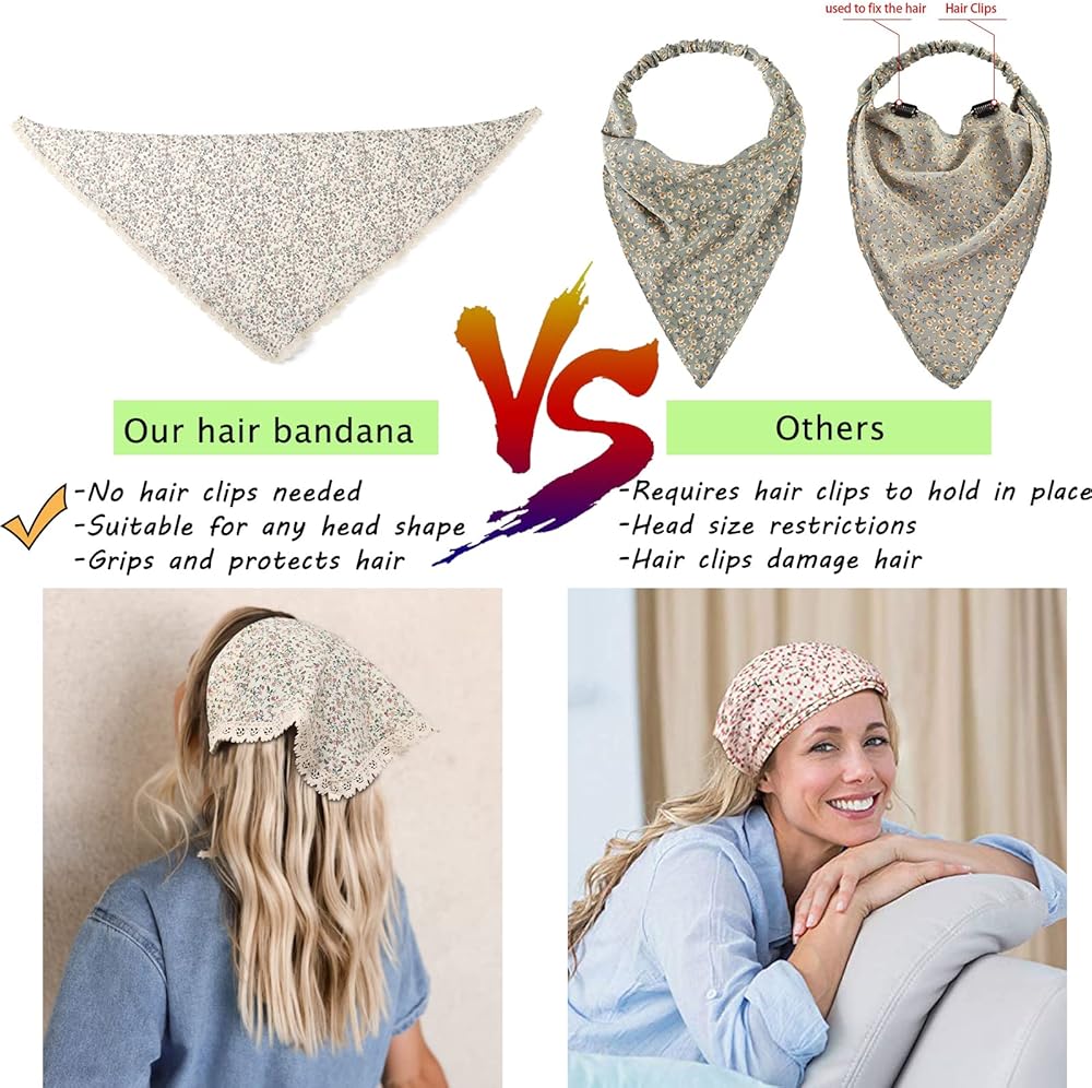 • 【أسهل وأكثر راحة في الاستخدام】يتميز وشاح الشعر المنديل بأنه مبتكر، وهو طويل بما يكفي لتثبيته في مكانه بواسطة عقد بدلاً من مشابك الشعر ذات النمط الكلاسيكي لضمان قدرة معظم الأشخاص على ارتدائها. كل منديل شعر هو الحجم المناسب لك.