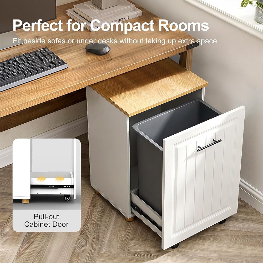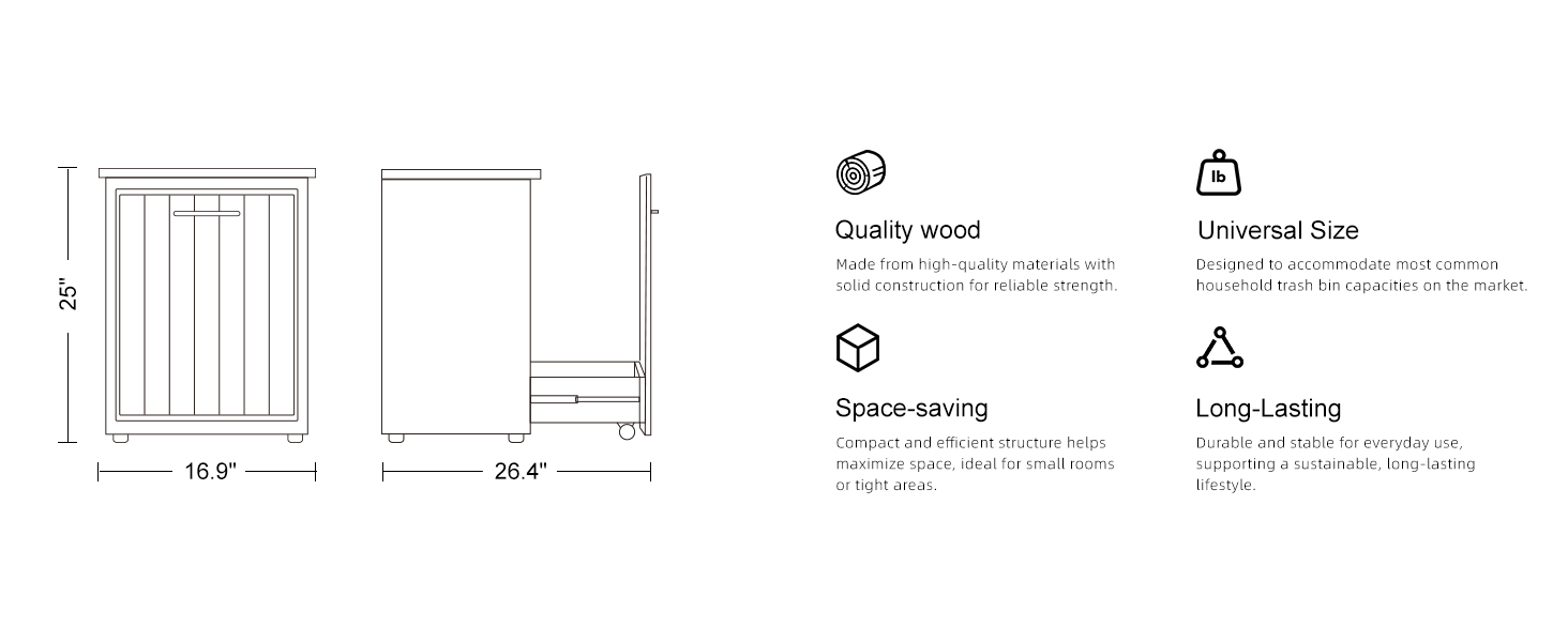 [أنيقة وعملية]: بفضل تشطيبها الخشبي الحديث وخطوطها النظيفة، تجمع خزانة القمامة القابلة للسحب هذه بين العملية وجماليات الديكور المنزلي. يمتزج بسلاسة مع المطابخ وغرف الغسيل وغرف الطعام وغرف المعيشة والحمامات، كما أنه مثالي للمساكن والشقق.