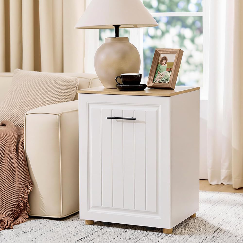[تخزين وتصميم متعدد الأغراض]: هذه الخزانة ليست فقط لسلة المهملات، بل يمكن استخدامها كسلة غسيل أو لتخزين طعام الكلاب والقطط. تم تصميم سطح العمل لتوفير المساحة، كما يوفر مكانًا لتخزين الإمدادات اليومية والديكورات وما إلى ذلك.