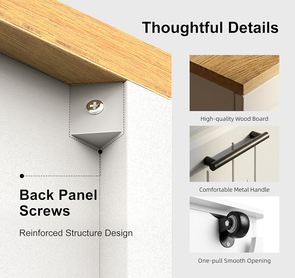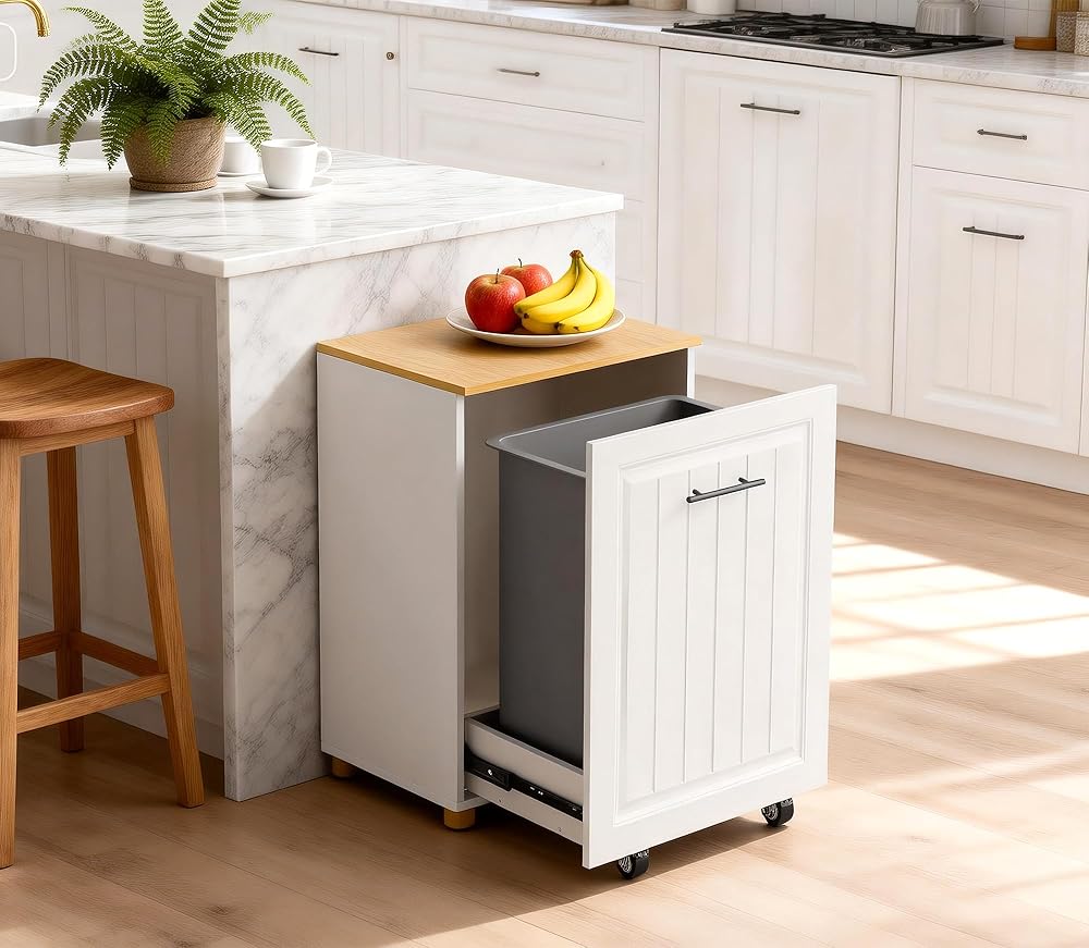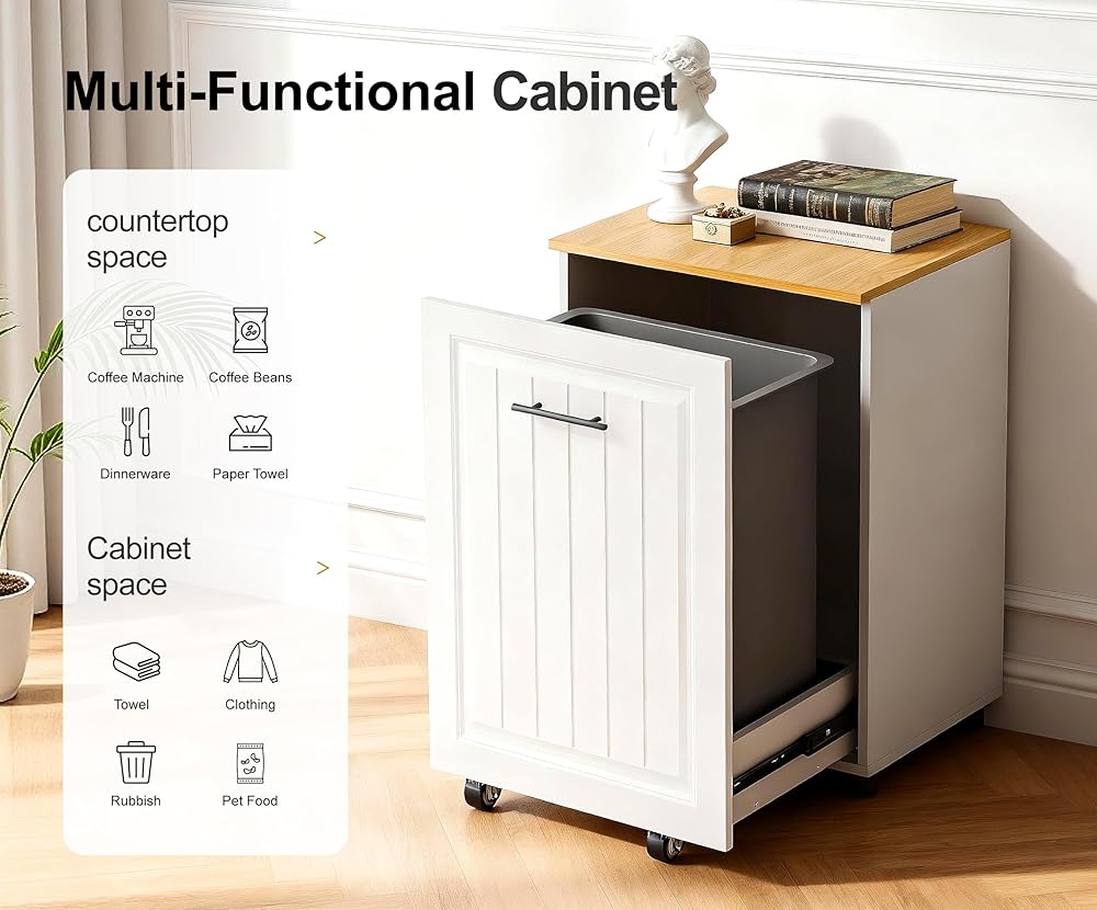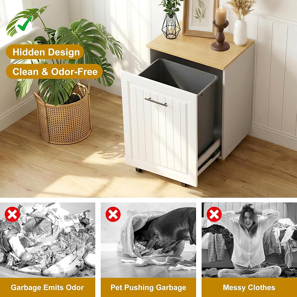 [تخزين القمامة المخفي]: احتفظ بسلال المهملات بعيدًا عن الأنظار. يمنع هذا التصميم المغلق الحيوانات الأليفة من التنقيب في القمامة ويمنع الروائح الكريهة بشكل فعال، مع الحفاظ على المساحة الخاصة بك نظيفة ومنظمة ورائحة منعشة.