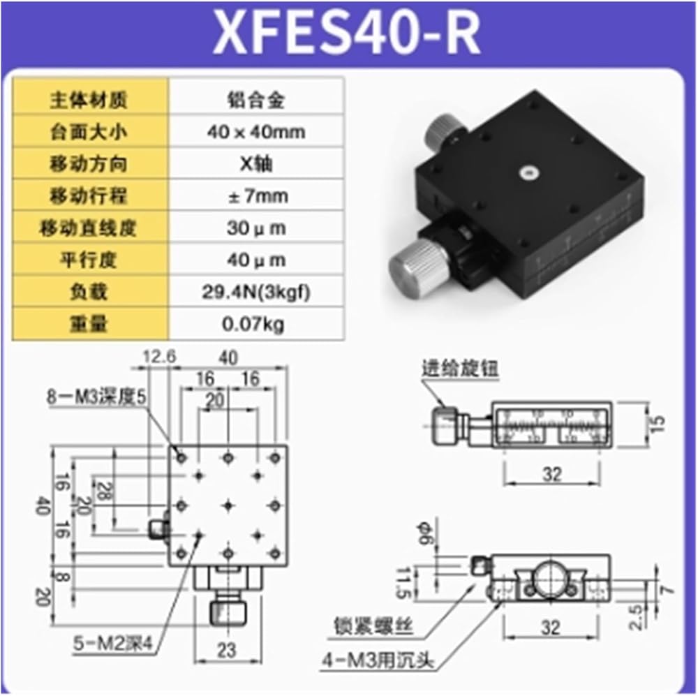 XFES40-R X-axis Manual Fine Adjustment Slide Table With Dovetail Groove Displacement Stage