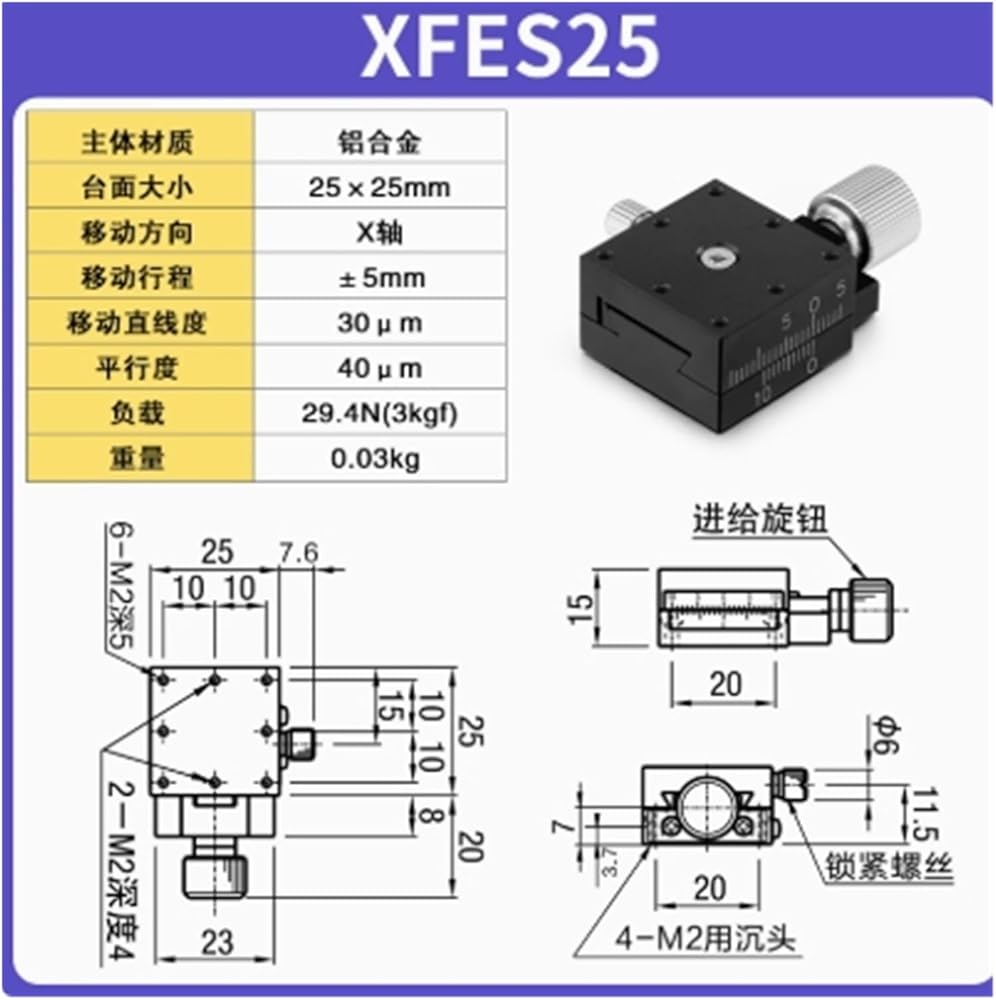 XFES25 X-axis Manual Fine Adjustment Slide Table With Dovetail Groove Displacement Stage