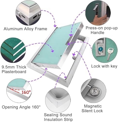 Are you looking for a discreet solution to access your plumbing and electrical systems without compromising the aesthetic appeal of your walls? Our aluminum drywall access door is the ideal solution! Designed to blend seamlessly into your home, this access panel can be easily painted or wallpapered to match your existing decor, ensuring a sleek and stylish finish. **Specifications:** - **Material:** Durable Aluminum and Plasterboard - **Opening Size:** Customizable to fit your needs - **Door Thickness:** Greater than 1-4/5 inches - **Installation:** Simple plastering and painting process - **Applicable Spaces:** Ideal for pipe wells, water meter boxes, fire hydrants, distribution boxes, and inspection doors **Key Features:** - **Smooth Drywall Panel:** Offers a clean, finished look that integrates with your walls, making it ready for paint or wallpaper. - **Reinforced Corners:** Designed for durability, ensuring it withstands frequent access and heavy-duty use. - **Lightweight but Sturdy Aluminum:** Resistant to rust, this access door is built for long-lasting use in any environment. - **Secure Lock & Key:** Provides peace of mind by keeping utilities hidden and secure, while still allowing easy access when needed. - **160-Degree Opening Space:** Guarantees convenient access for maintenance workers, making upkeep a breeze. - **Flush-Mount Design:** Ensures the door sits perfectly even with walls for an invisible look. - **Magnetic Closure:** Keeps the door firmly shut while allowing for quick access. **Package Includes:** - 1 × Access Panel/Door **Please Note:** 1. Sizes are manually measured and may vary by 1-3 cm, which is standard. 2. Due to lighting and screen differences, the actual color may slightly differ from the images. Transform your access points into stylish features with our aluminum drywall access door, combining functionality and elegance for your home!
