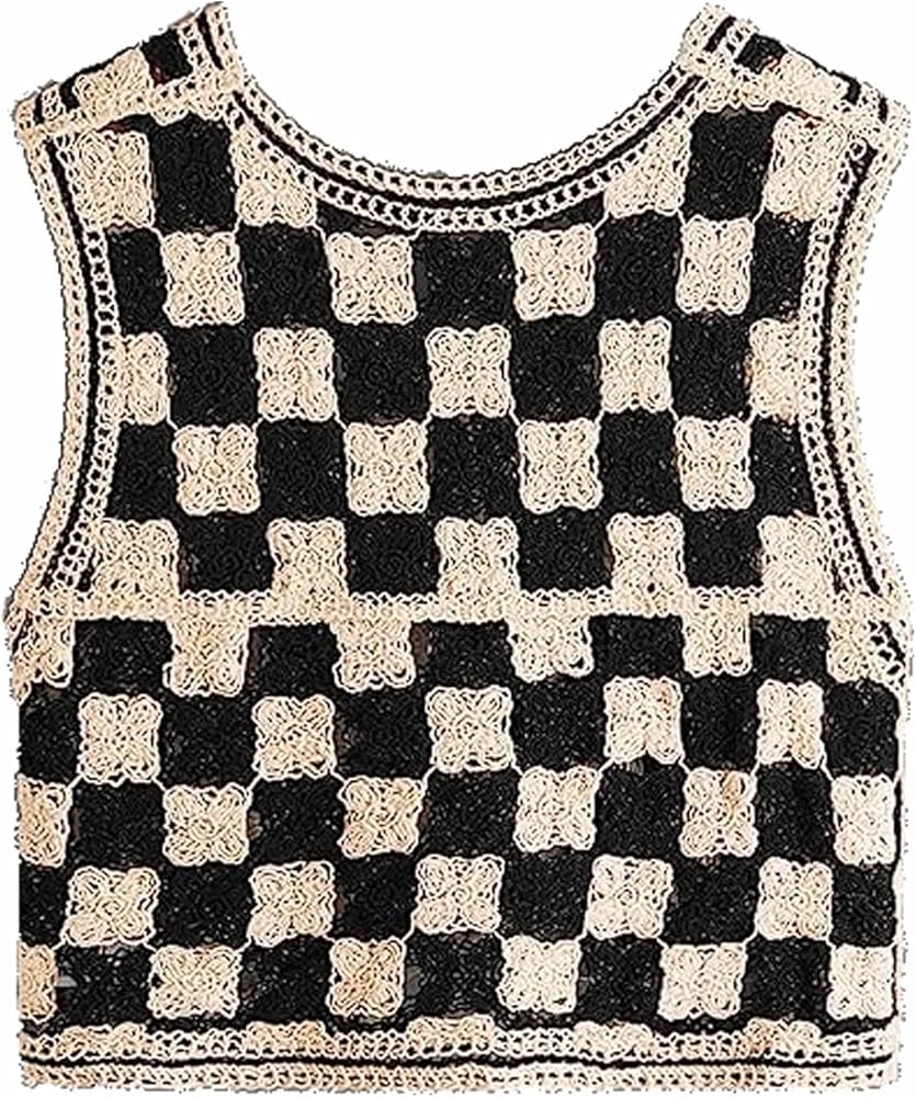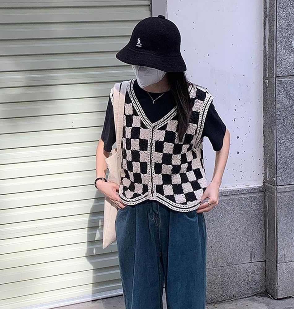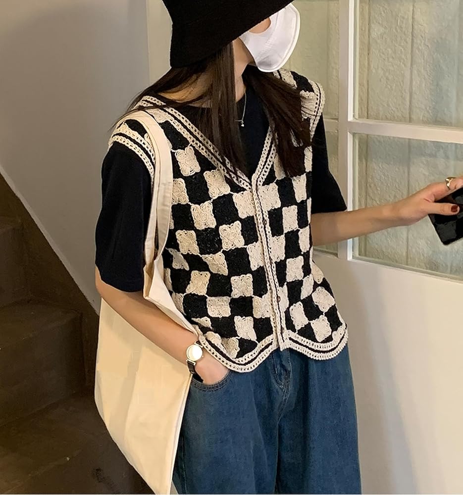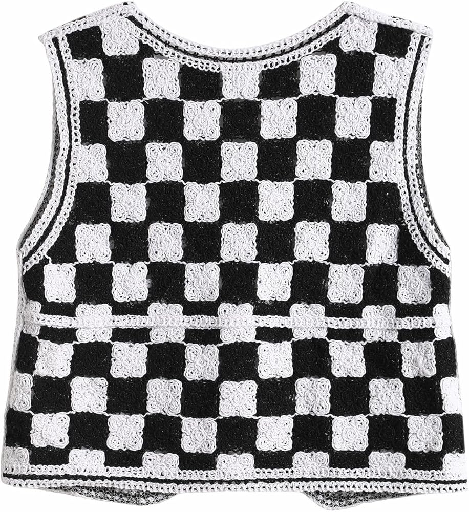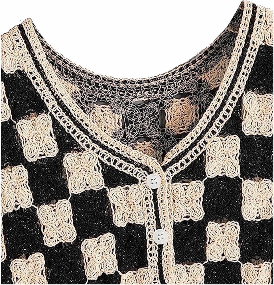 التصميم: سترة محبوكة بدون أكمام، رقبة على شكل حرف V، بدون أكمام، أزرار، نمط منقوش، حاشية غير متماثلة، سترة علوية قصيرة بدون أكمام.