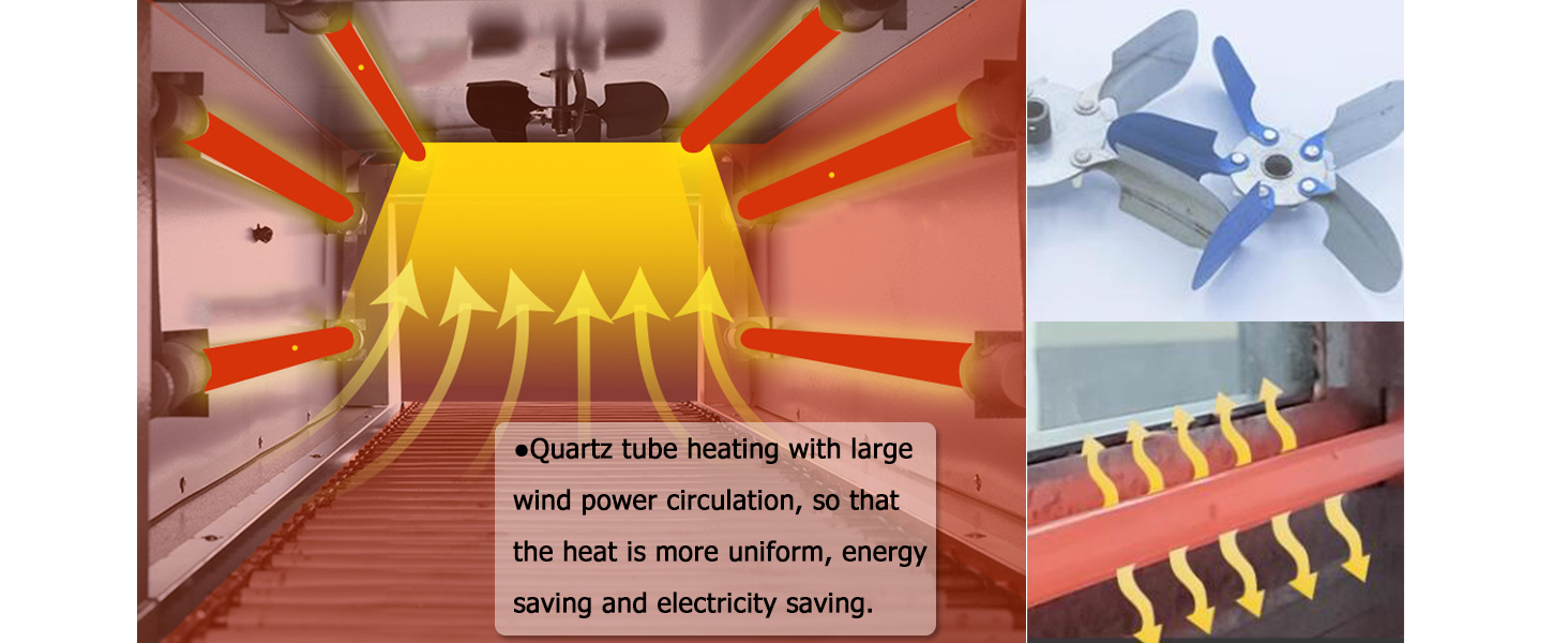 【استخدام واسع】المسافة بين السلاسل 2 سم. يمكن أن تلتصق المنتجات الدائرية بين الفجوات وتتقلص بشكل أفضل مع دوران الحزام الناقل. المنتجات ذات الأسطح الملامسة الأكبر مناسبة لآلة الانكماش هذه.