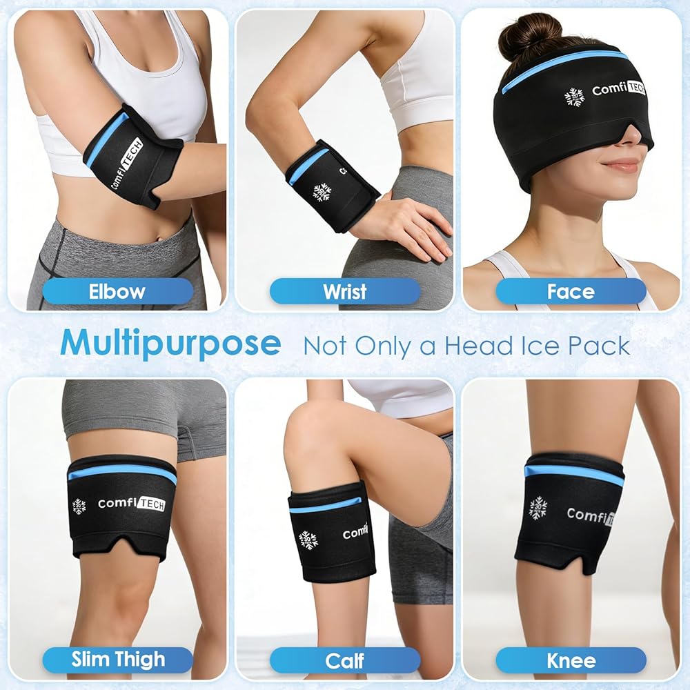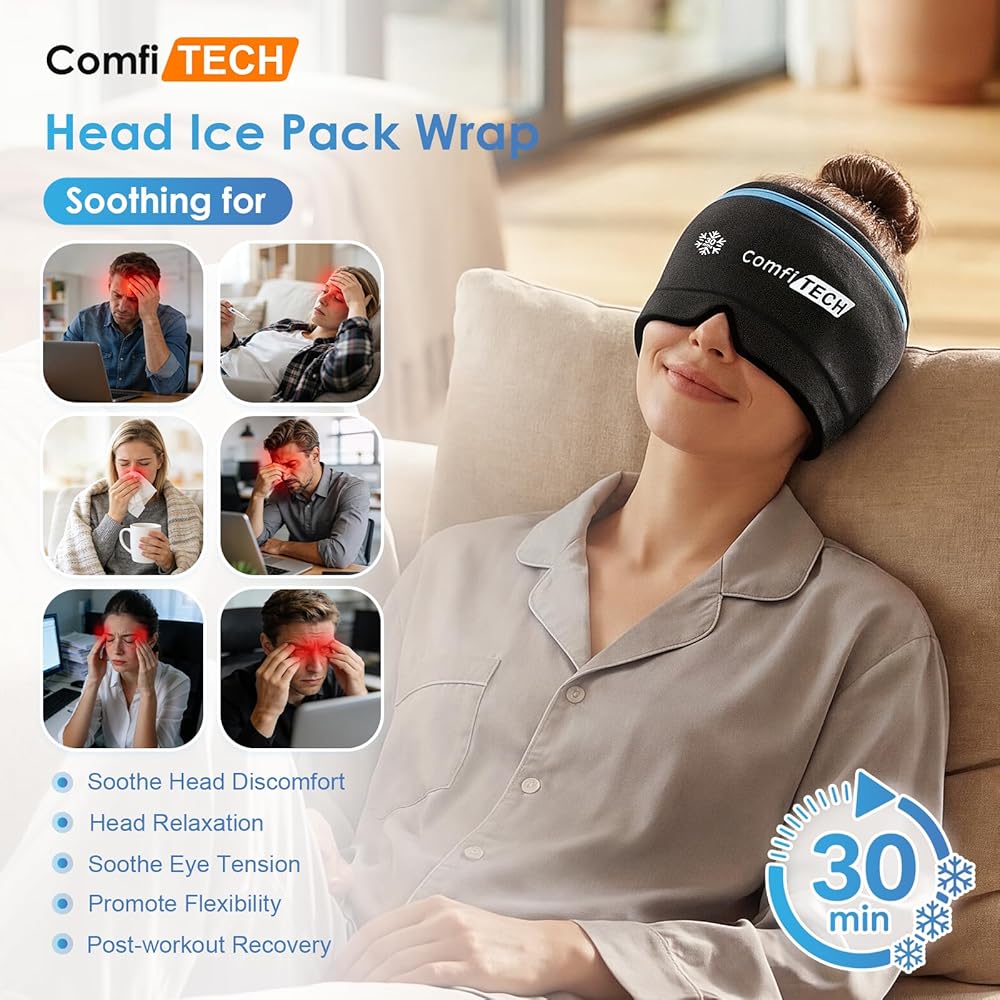 360° Coverage for Complete Headache Relief - This isn't just an ice pack sitting on your forehead. It wraps completely around your head, covering your forehead, temples, the base of your skull, and even your eyes. Cold therapy works by gently constricting blood vessels and lowering skin temperature to ease tension. It's effective for throbbing migraines, tension headaches, sinus pressure, or puffy eyes. Soothing relief that simply works when you need it