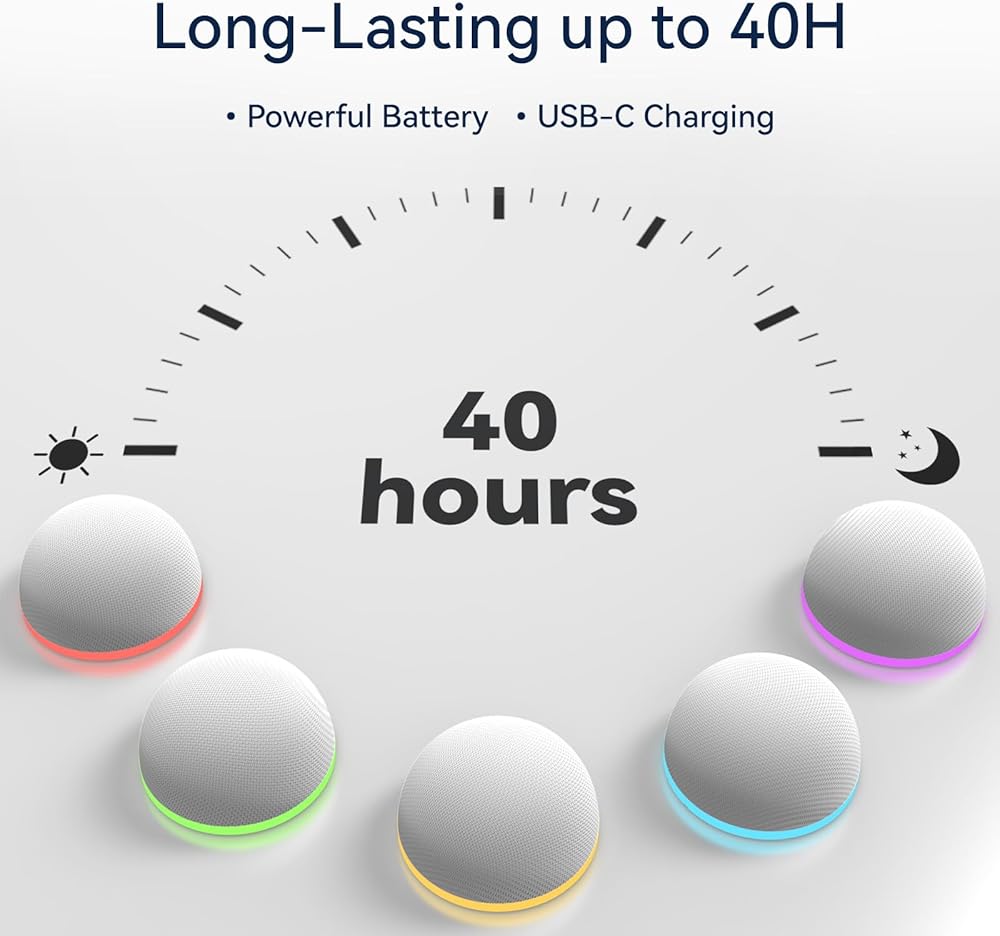 ☞ عمر بطارية 40 ساعة، طاقة طوال الليل وفي النهار: تم تصميم آلة الصوت ذات الضوضاء البيضاء القابلة لإعادة الشحن ببطارية قوية توفر ما يصل إلى 40 ساعة من وقت التشغيل. يمكن تشغيله خلال الليل وحتى النهار بشحنة واحدة، دون القلق بشأن نفاد الطاقة ومقاطعة نومك. يتصل كابل Type-C المرفق بسهولة ببنك الطاقة أو الكمبيوتر المحمول أو شاحن الحائط أو شاحن السيارة.