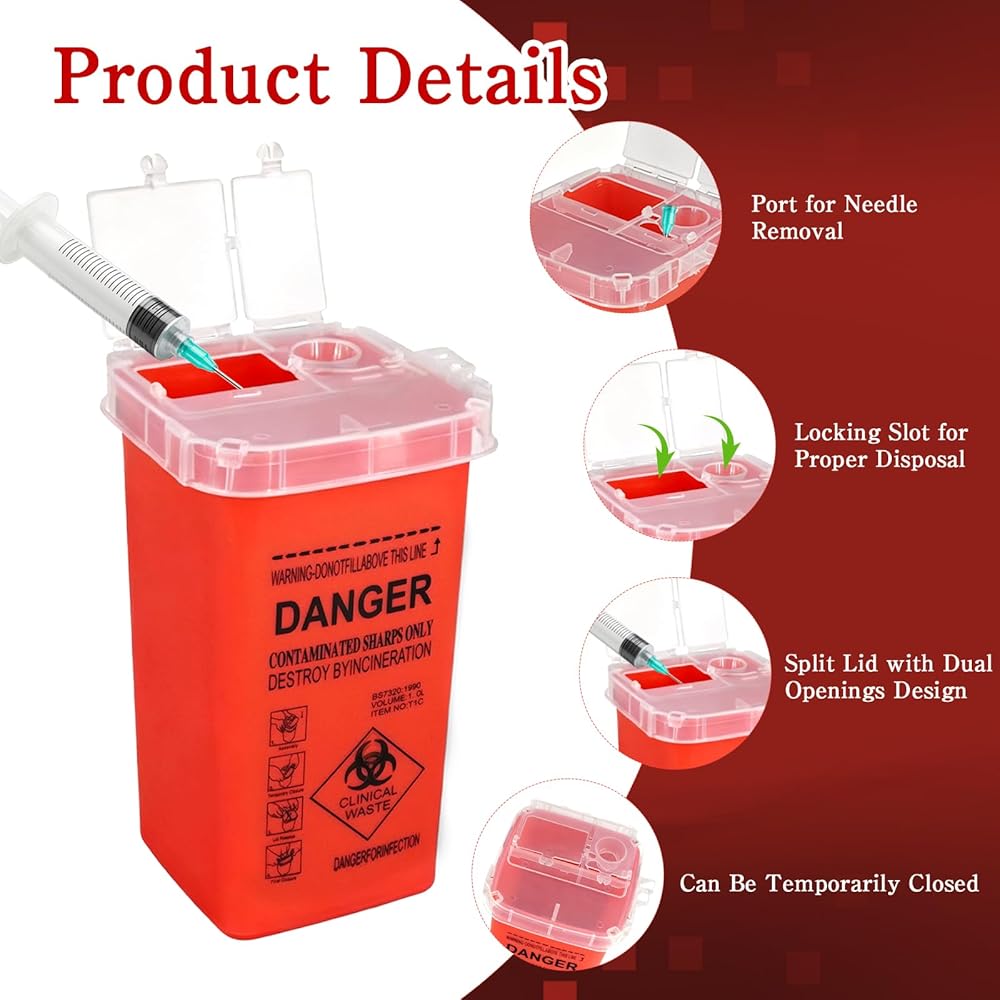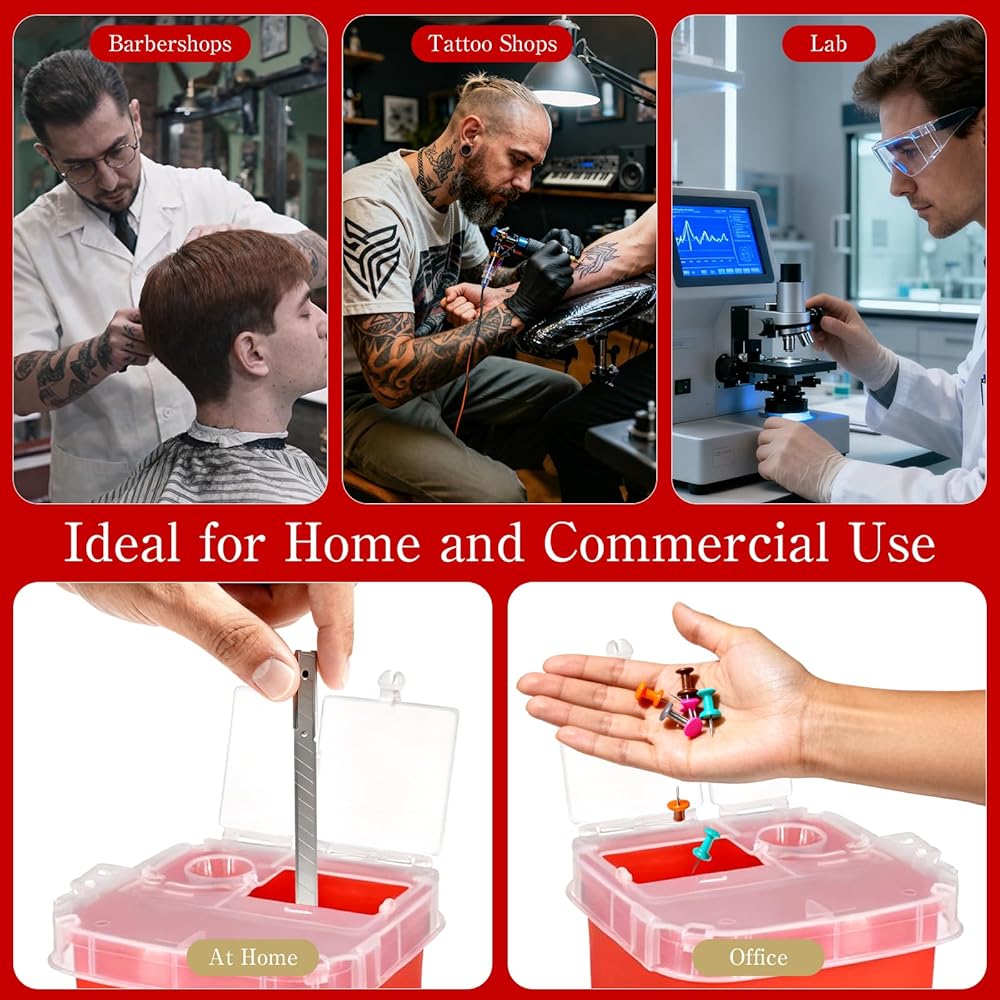 متعددة الاستخدامات للمنزل أو العمل: حاوية الأدوات الحادة ذات الوجه العلوي مثالية لمتاجر الحلاقة وصالونات الوشم وأكثر من ذلك فهي عملية أيضًا للمنزل