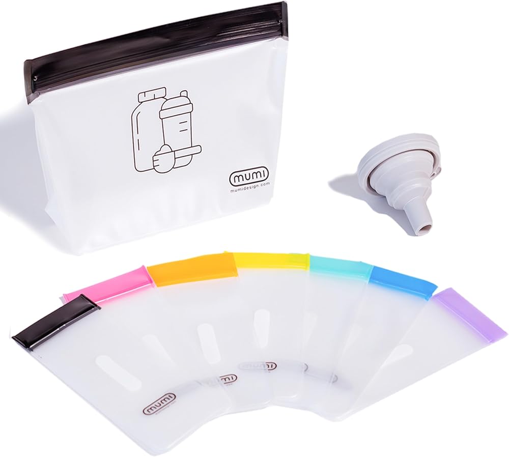 • عبوات سفر مريحة - تحتوي حاوية السفر التكميلية للمسحوق الخالية من مادة BPA والرصاص على 7 عبوات قابلة لإعادة الاستخدام بجرعة واحدة مع حقيبة تخزين بسحاب (8 × 5 بوصات). تتيح هذه الأكياس المرمزة بالألوان سهولة تنظيم المكملات الغذائية والفيتامينات اليومية ووضع العلامات عليها.