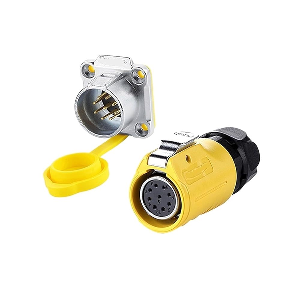 LP20 9-pin female male waterproof aviation socket yellow reverse IP68 connector UL