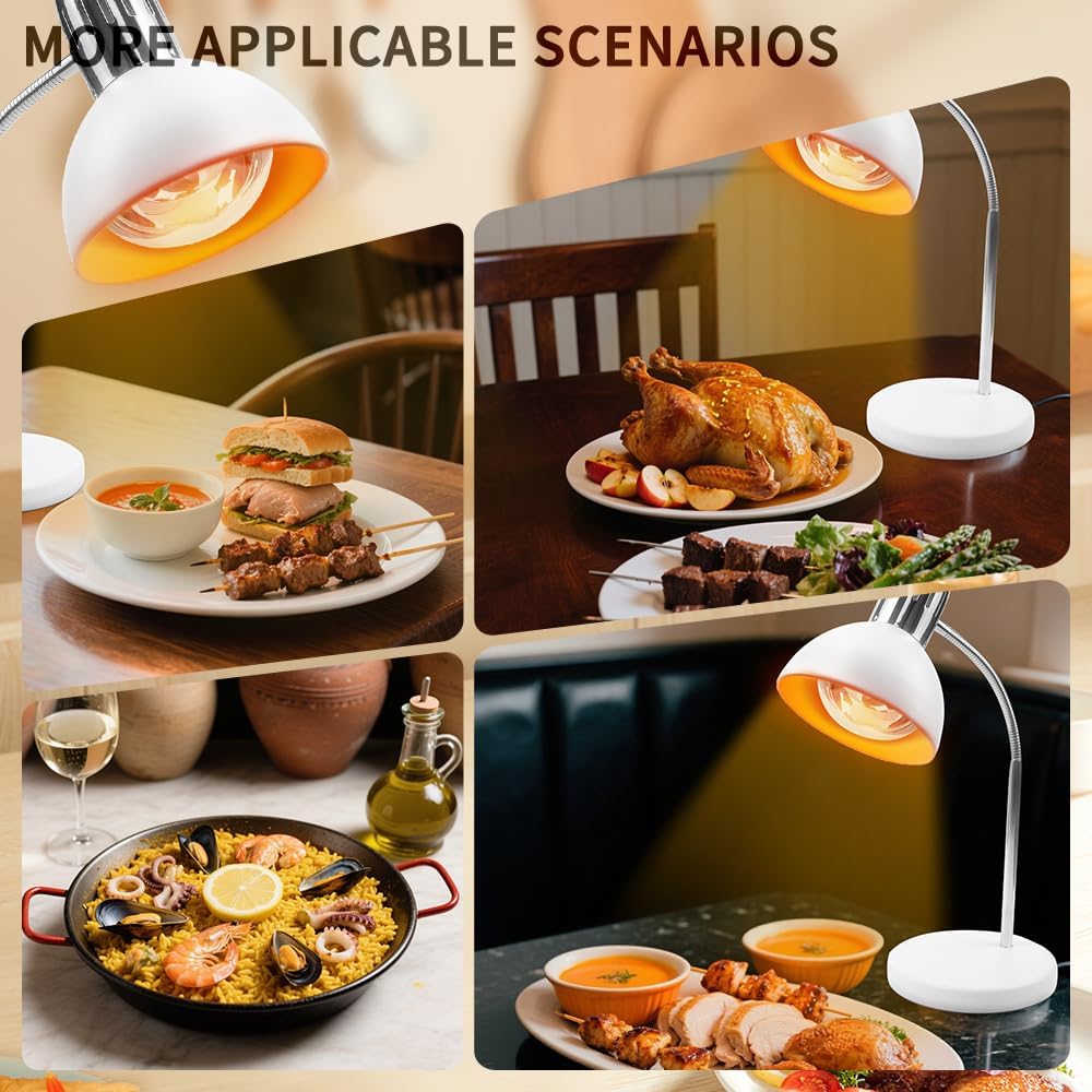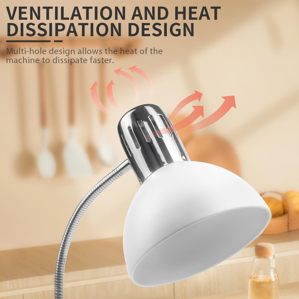 2. Unmatched Versatility: Easily put the food heat lamp on any stable surface or any tabletop with the heavy stable lamp stand. The fully adjustable gooseneck offers pinpoint accuracy for optimal heat direction.