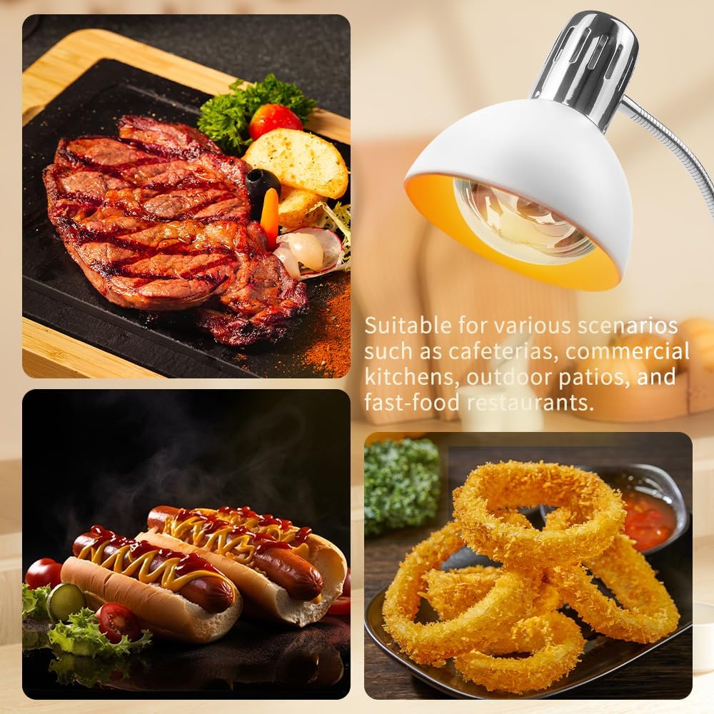 【Precise Stepless Dimming Control】: Go Beyond Basic Warmth! Our professional food warmer lamp features a unique stepless dimmer switch, allowing you to effortlessly adjust the heat intensity from low to high. This gives you ultimate control to perfectly keep everything from delicate pretzels to hearty BBQ meats warm without drying them out, preserving perfect flavor and texture
