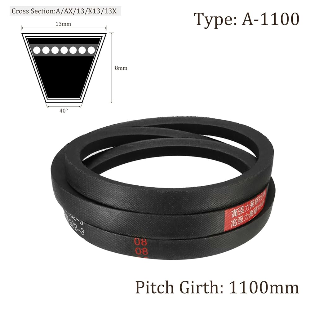 قطعة واحدة من أحزمة محرك V A-1100 - [طول الملعب 1130 مم × عرض 13 مم × سمك 8 مم] حزام نقل مطاطي من القسم A لأنظمة القيادة، أسود