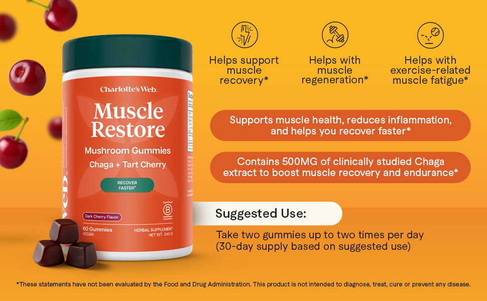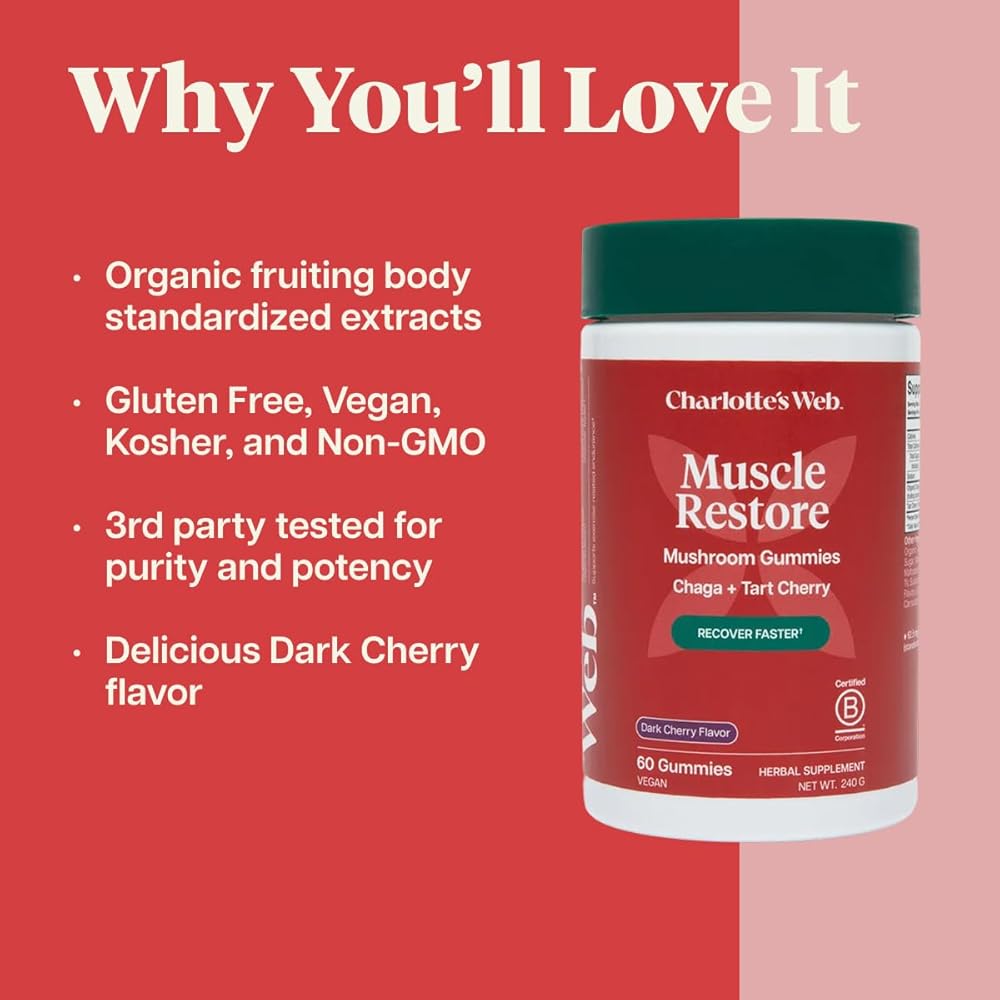 تدريب قوي واستعادة ذكاء: مع Chaga وTart Cherry، تدعم علكات الكرز الفطرية فائقة الجودة هذه تعافي العضلات، وتجديدها، والقدرة على التحمل، وتقليل التعب والالتهابات بعد التمرين.