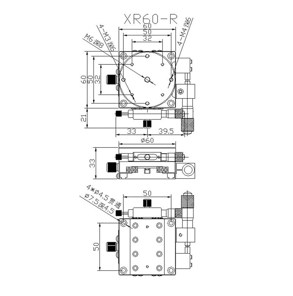 محور XR 60 مم، حركة متوازية بصرية، مرحلة دوران الإزاحة اليدوية XR60-R