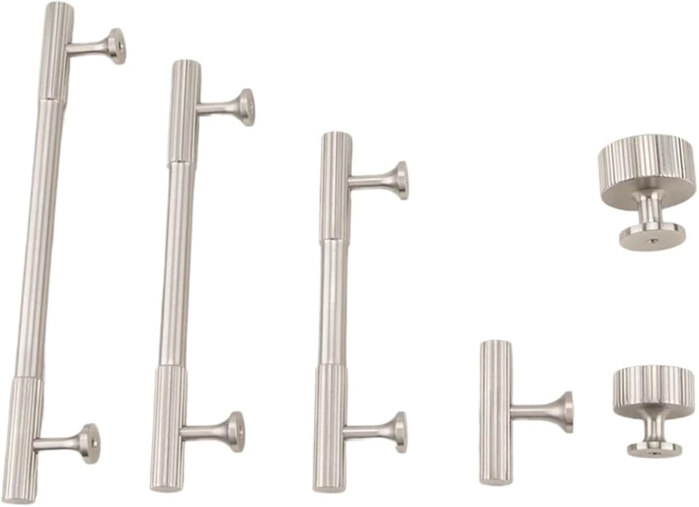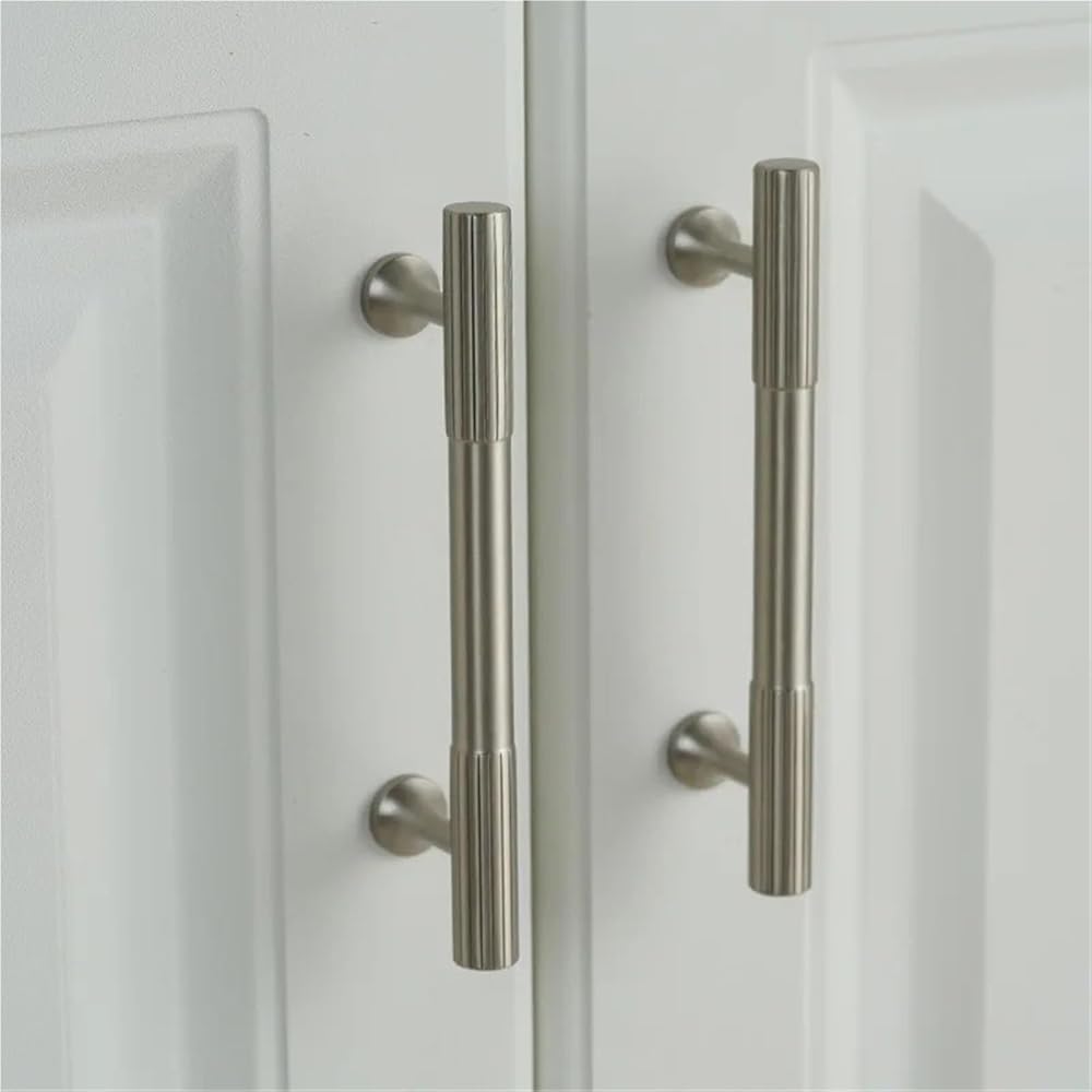Solid Brass Long Handle Vertical Pattern Vintage Cabinet Drawer Nickel Brushed 1Pcs