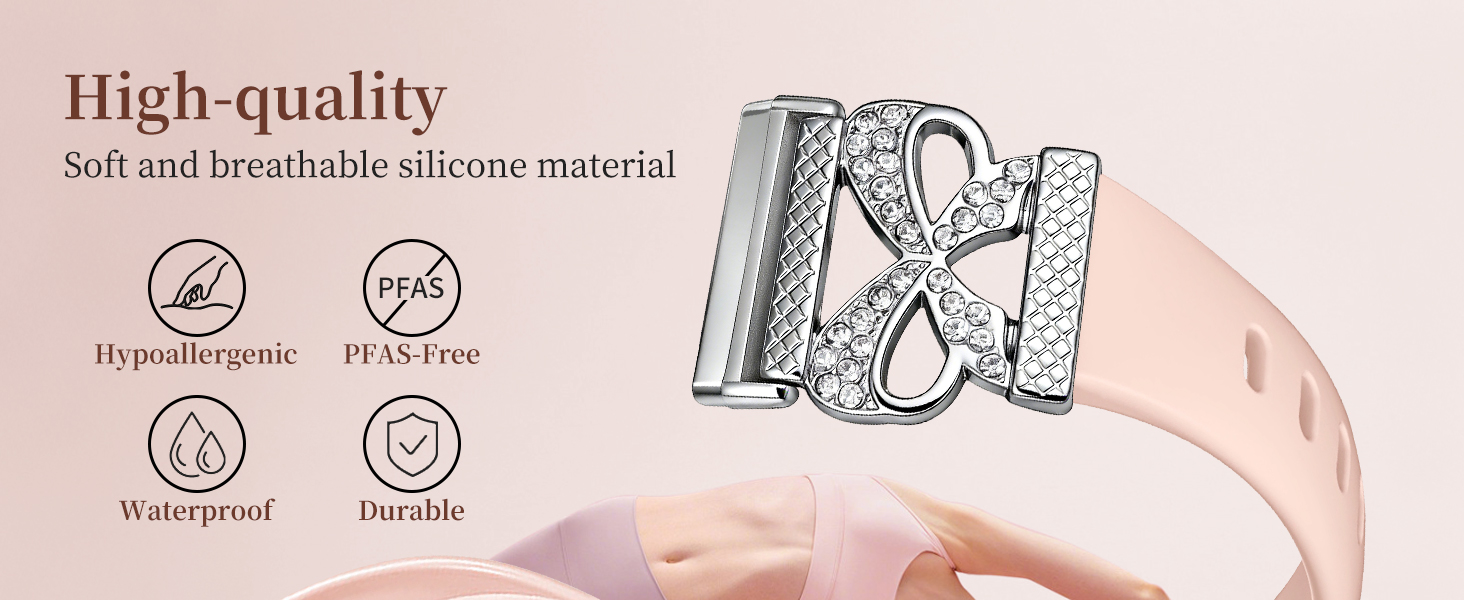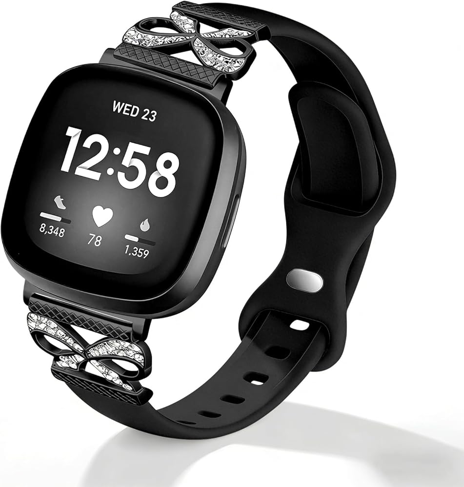 【تصميم أنيق على شكل رأس على شكل فيونكة】تتميز أحزمة السيليكون النحيفة المقاومة للماء والمتوافقة مع أحزمة Fitbit Versa 4 في هذا السوار برأسه المصمم بشكل جميل على شكل قوس. إنها تضيف لمسة من الأناقة الأنثوية والرقي إلى أساور فيتبيت فيرسا 3 الخاصة بك، وتحولها من أداة تقنية إلى قطعة مجوهرات جميلة تكمل أي ملابس.