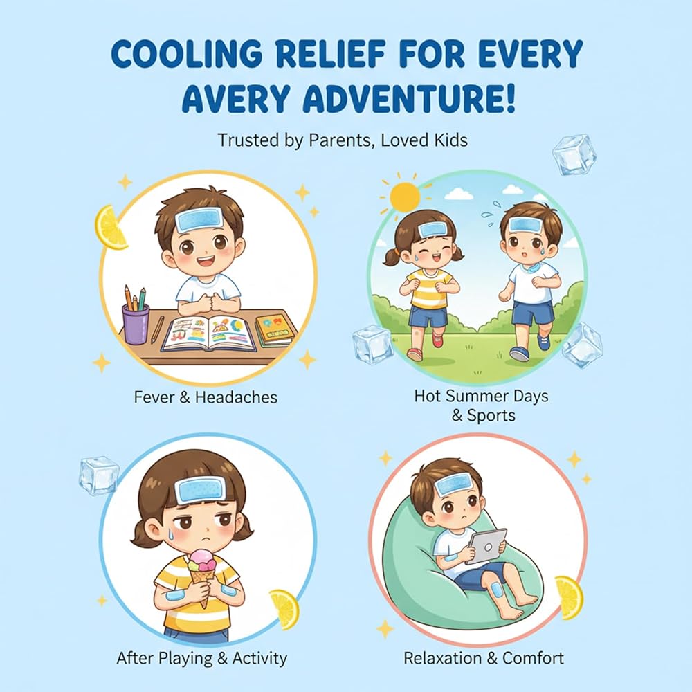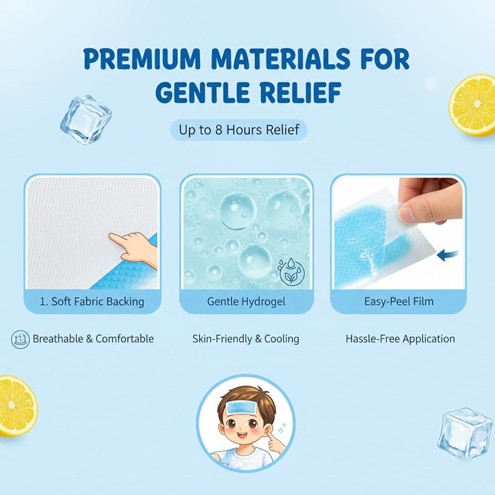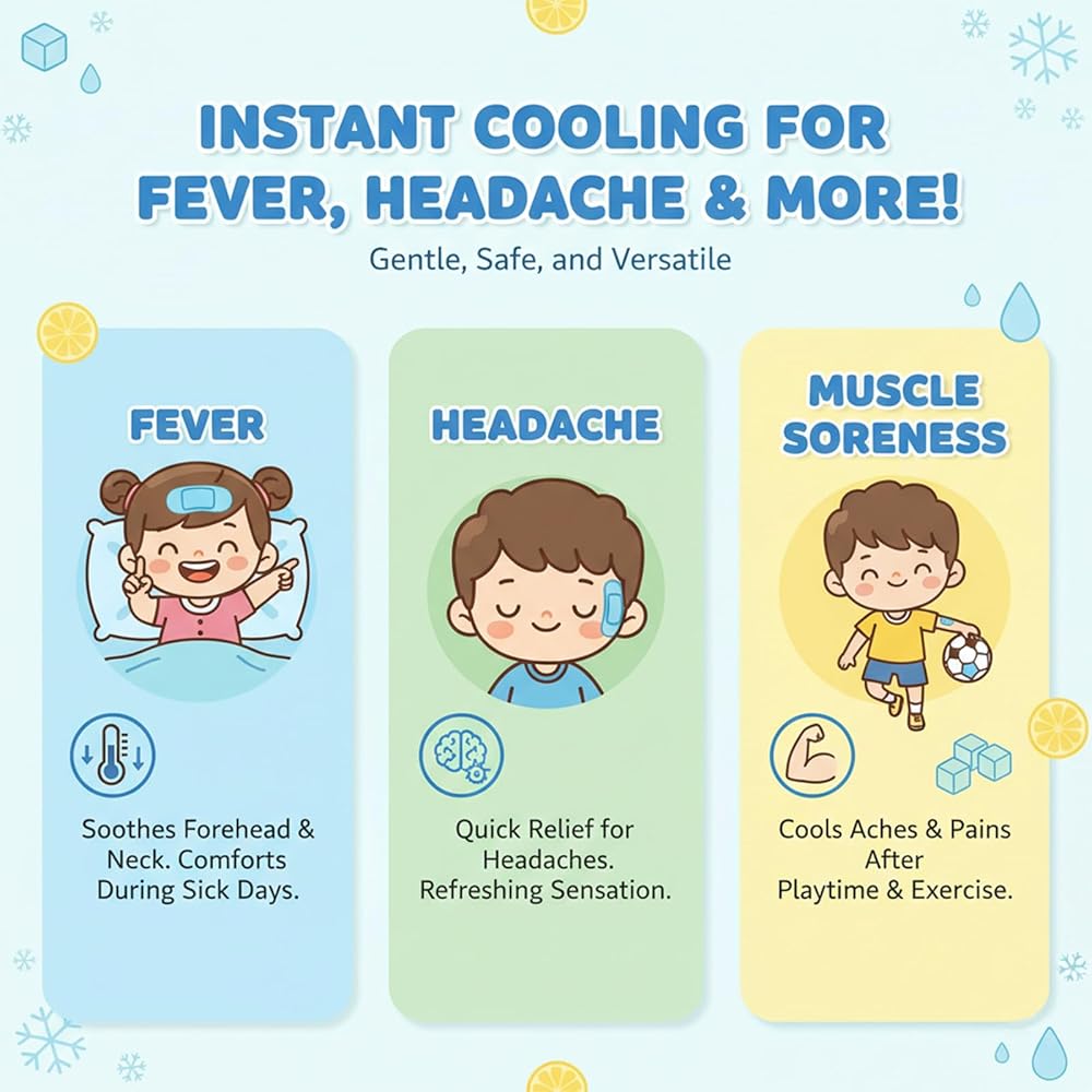 يجب اقتناؤه للأطفال والكبار - رقعتنا الرائعة تعمل بشكل رائع للأطفال الصغار الذين يعانون من الحمى؛ أخرجي الرقعة من العبوة، وأزيلي الطبقة الرقيقة واضغطي بلطف على الجبهة. سوف يحافظ اللاصق الخفيف على الرقعة في مكانها