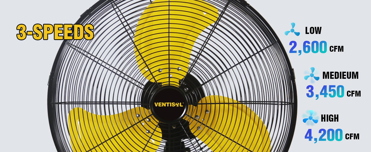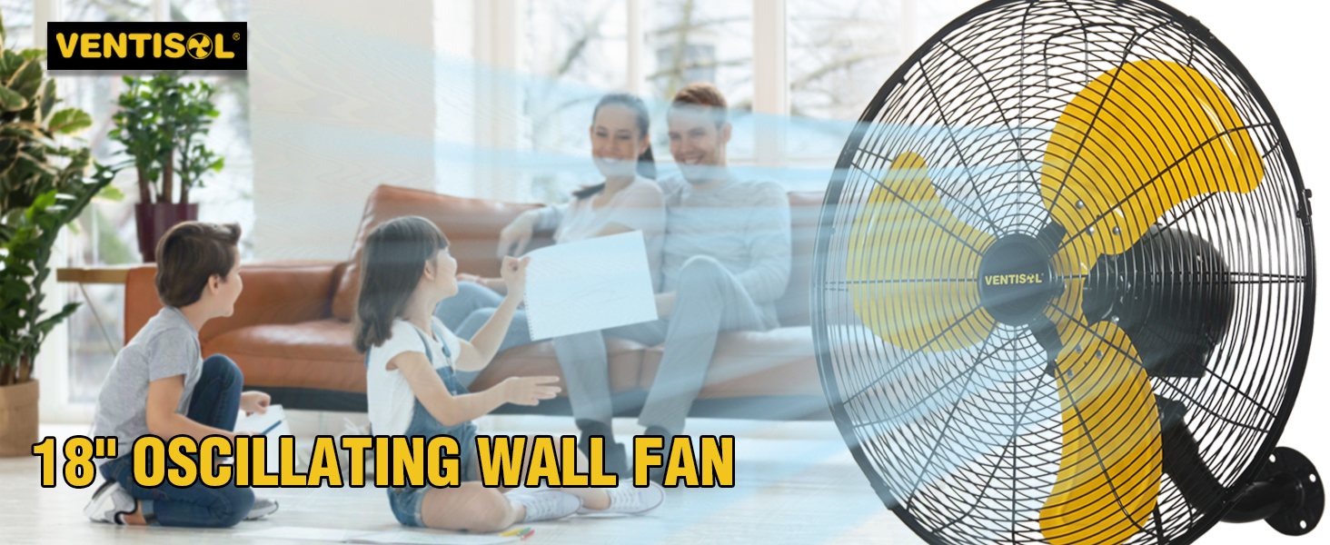 Ventisol 18 بوصة 3 سرعات عالية السرعة تتأرجح مروحة الحائط، 4200 قدم مكعب في الدقيقة، 90 درجة التذبذب للمنزل وورش العمل والمحلات التجارية والتجارية والباحات