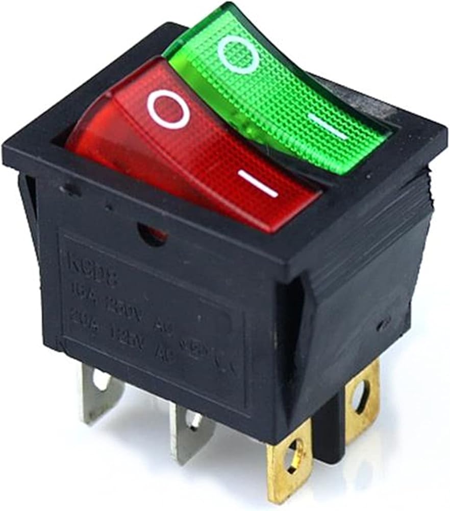 KCD3 مفتاح الروك المزدوج للقارب 6 دبوس تشغيل/إيقاف مع ضوء أخضر أحمر 20 أمبير 125 فولت تيار متردد