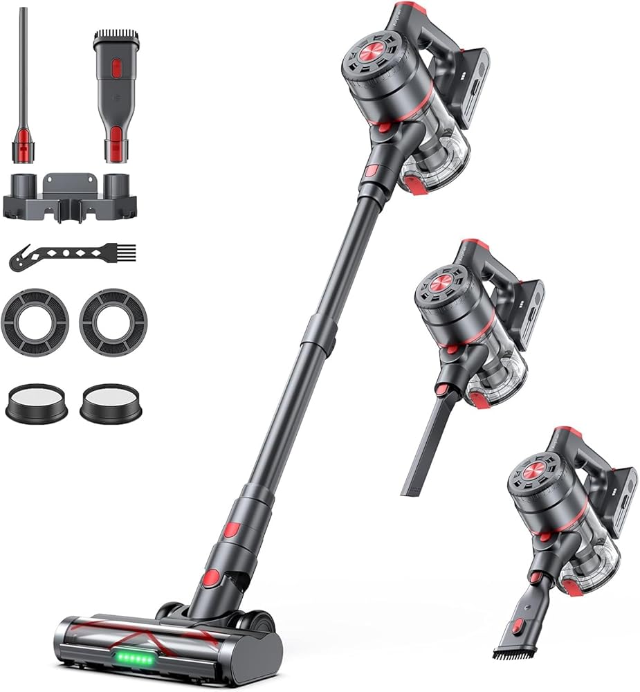 【محرك مزدوج 580 واط وشفط قوي 60 كيلو باسكال】 تم تجهيز المكانس الكهربائية اللاسلكية Airpher بمحرك مزدوج عالي الكفاءة 2026 و3 أوضاع شفط قابلة للتعديل، مع قوة شفط قصوى تبلغ 60000 باسكال. ينظف السجاد والأرضيات الصلبة والبلاط وشعر الحيوانات الأليفة والحطام والفتات بسهولة، مما يجعله مثاليًا للشقق الفردية وبيوت الحيوانات الأليفة والسفر بالمركبات الترفيهية.