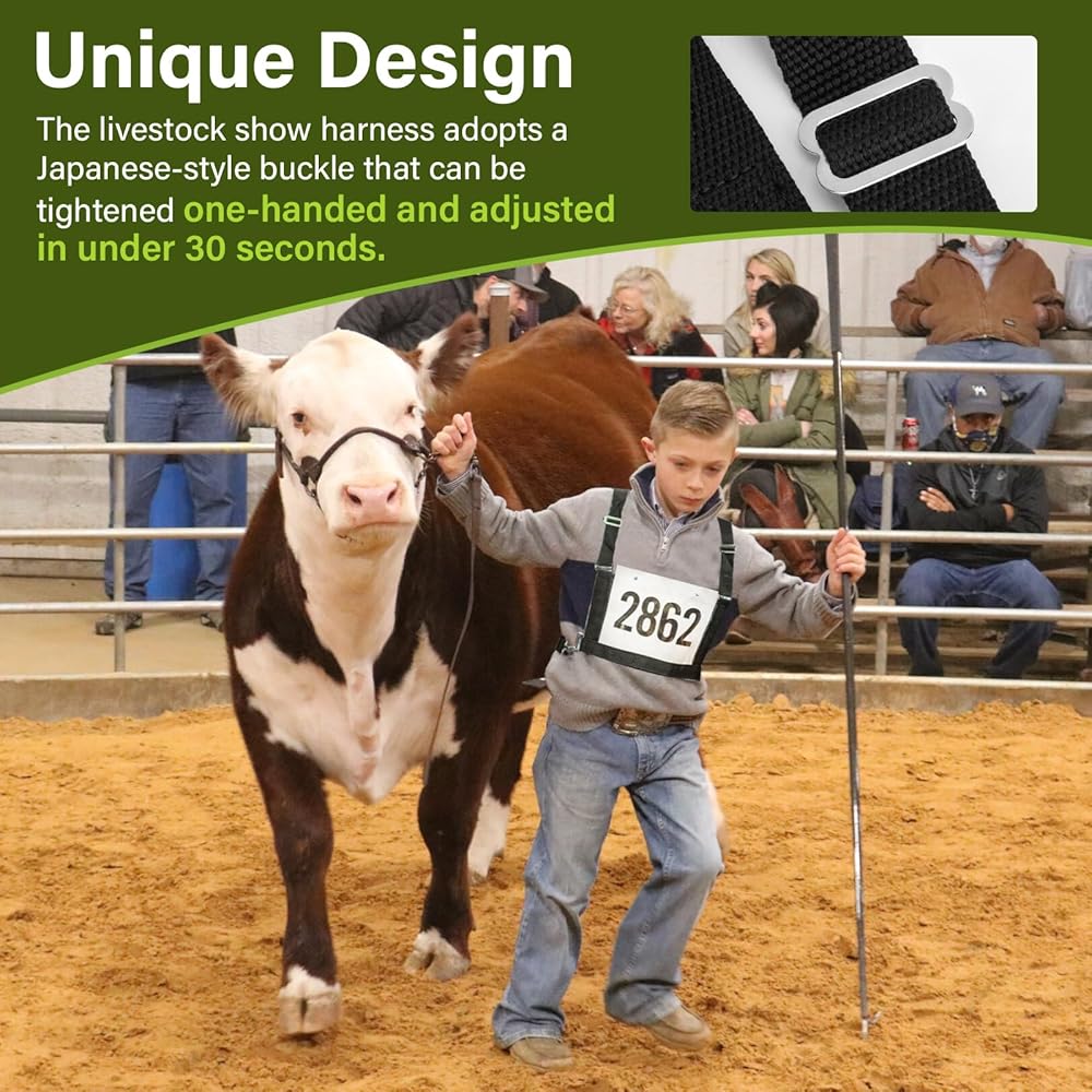 • 【Unique Design】The livestock show harness adopts a Japanese-style buckle that can be tightened one-handed and adjusted in under 30 seconds; you can change numbers without removing your shirt during class rotation, giving you more relaxed prep time and instant number swaps right before entering the ring.