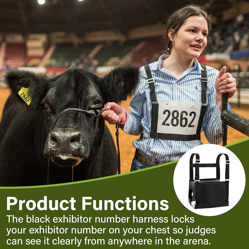 【Product Functions】The black exhibitor number harness locks your exhibitor number on your chest so judges can see it clearly from anywhere in the arena.
