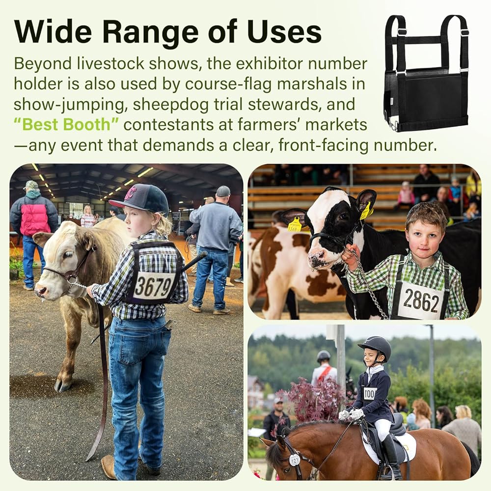 【Wide Range of Uses】Beyond livestock shows, the exhibitor number holder is also used by course-flag marshals in show-jumping, sheepdog trial stewards, and “Best Booth” contestants at farmers' markets—any event that demands a clear, front-facing number.
