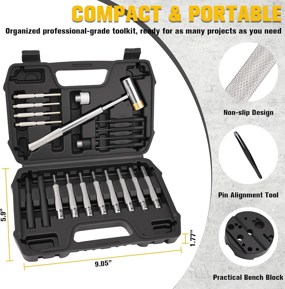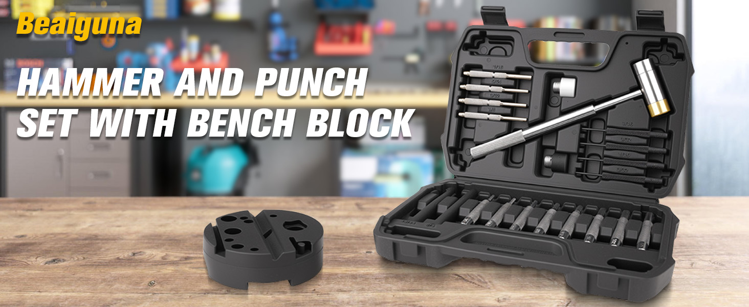 مجموعة ثقب من 23 قطعة من Beaiguna، مجموعة أدوات ميكانيكية مطورة، مجموعة ثقب ومطرقة مع كتلة مقعد، أداة ثقب معدنية فولاذية لصنع المجوهرات، وإصلاح الساعات، والإصلاحات الميكانيكية، وأشغال المعادن