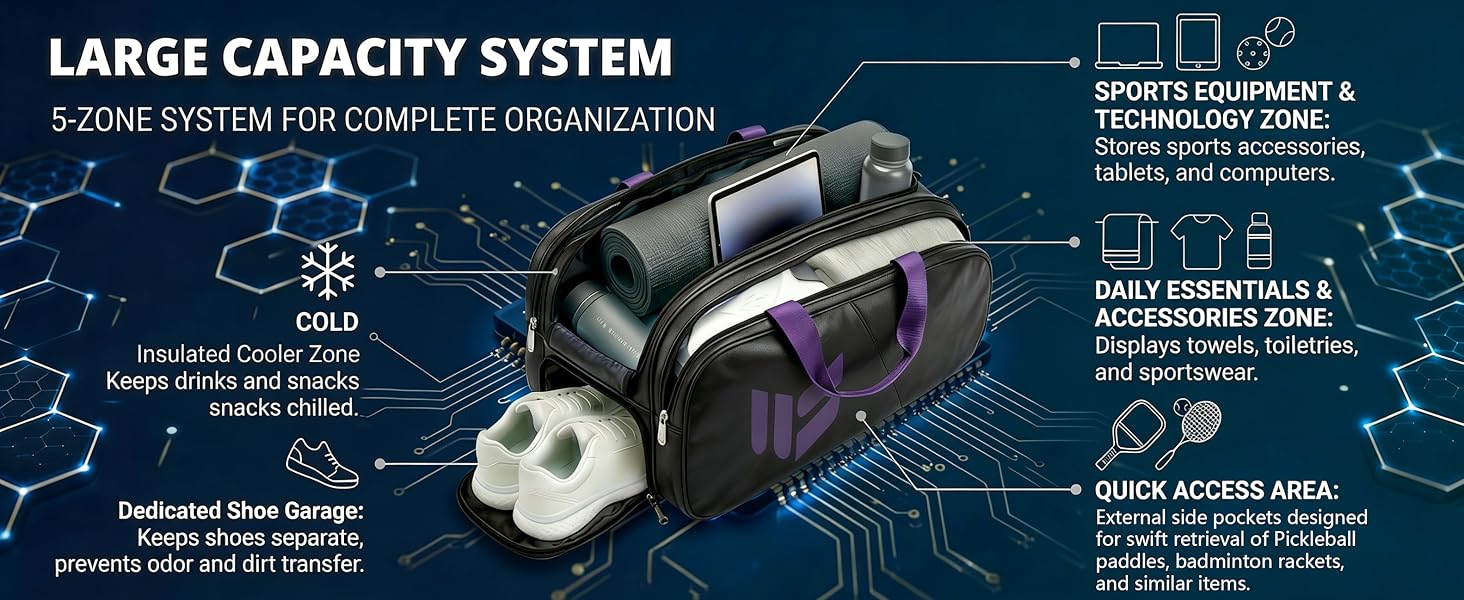 تصميم هجين 2 في 1 وحمل متعدد الاستخدامات: تتحول هذه الحقيبة الرياضية متعددة الوظائف بسلاسة من حقيبة ظهر لكرة البيسبول إلى حقيبة سفر من القماش الخشن، وتوفر خيارات حمل مرنة مع أحزمة حقيبة الظهر ومقابض الحمل. كما أنها تتميز بحقيبة أمتعة مدمجة (تناسب مقابض تصل إلى 7.48 بوصة) للسفر بسهولة في البطولات والتنقلات اليومية.