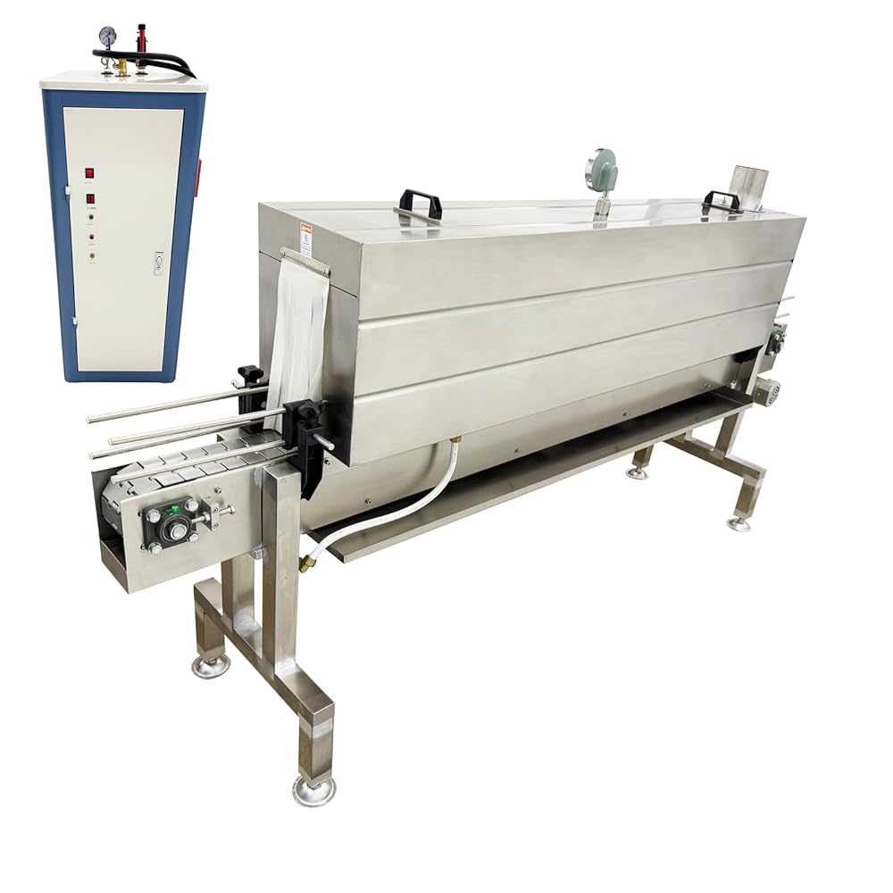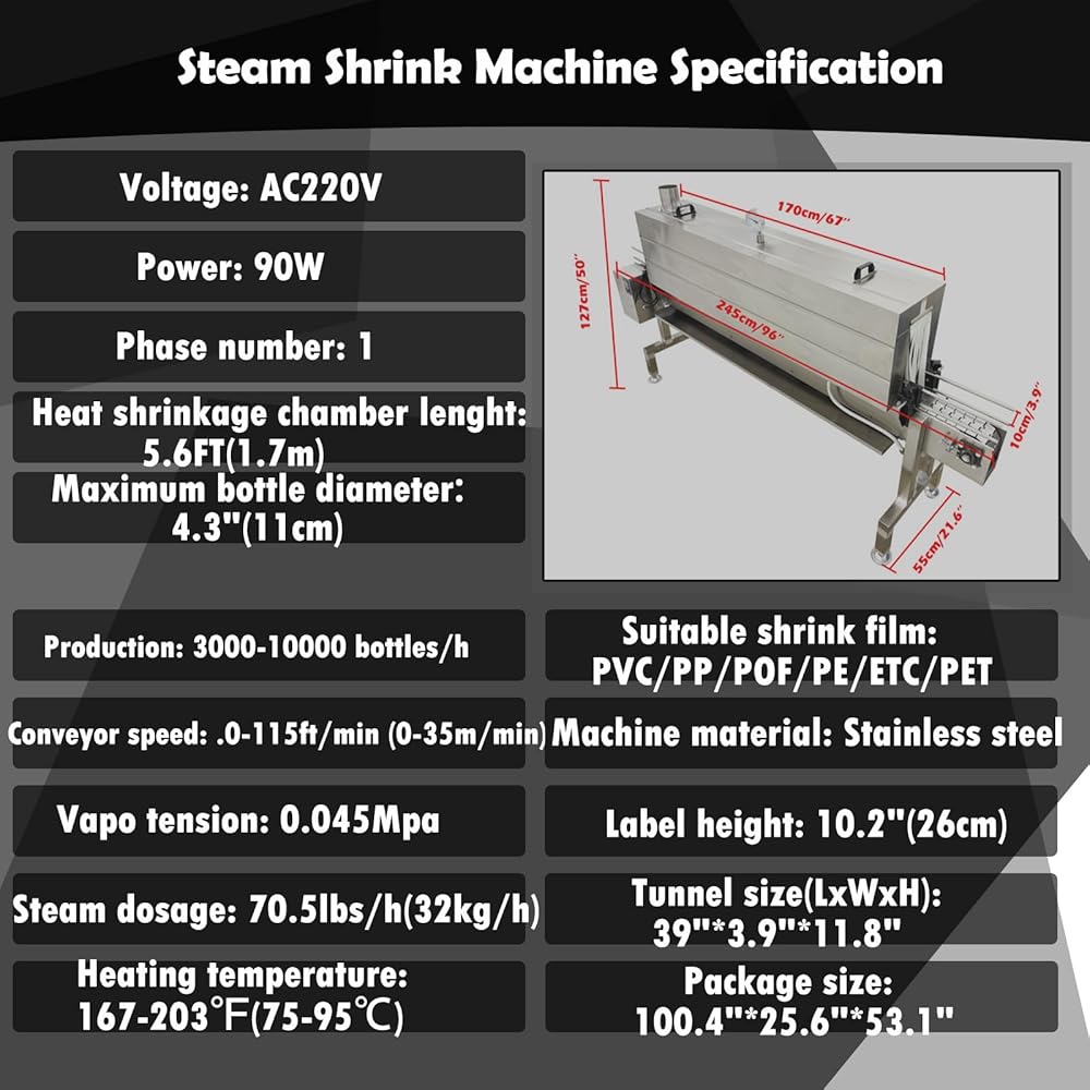 آلة تقليص الملصقات البخارية غرفة تسخين 5.6 قدم، 0-212 درجة فهرنهايت تحكم دقيق في درجة الحرارة لـ PVC/PP/POF/PE/ETC/PET مع مولد بخار 24 كيلو وات 220 فولت 3PH