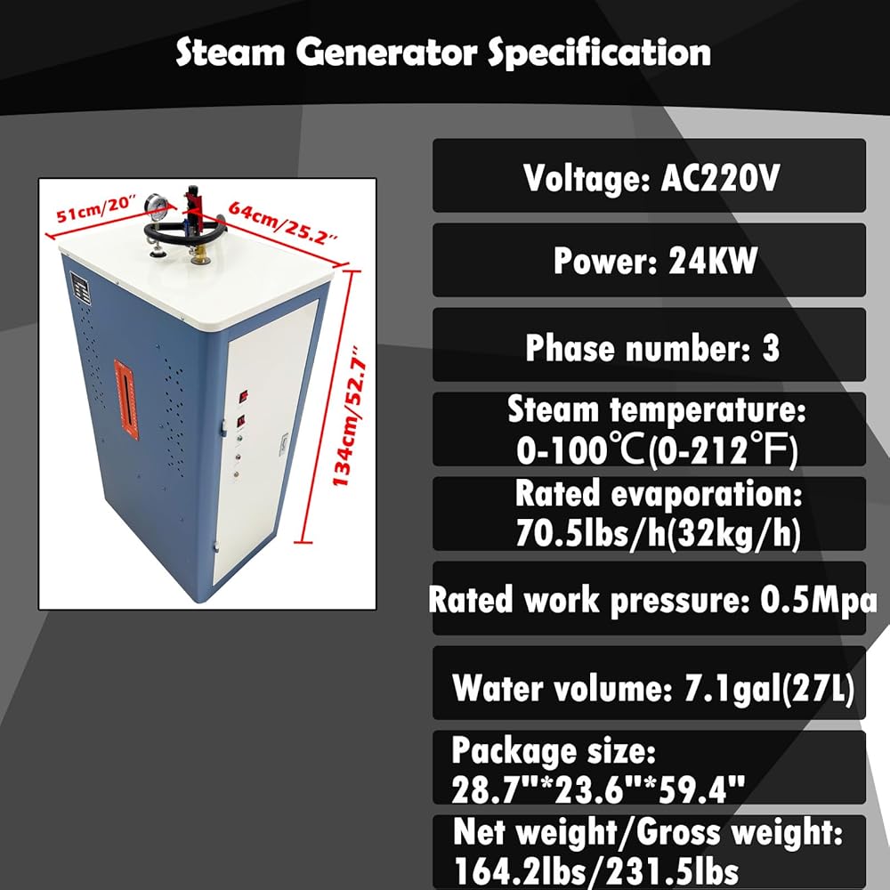 Powerful Steam Force: 24KW generator heats in 2-3 min with 0-95℃ precise control, sustaining high-intensity production.