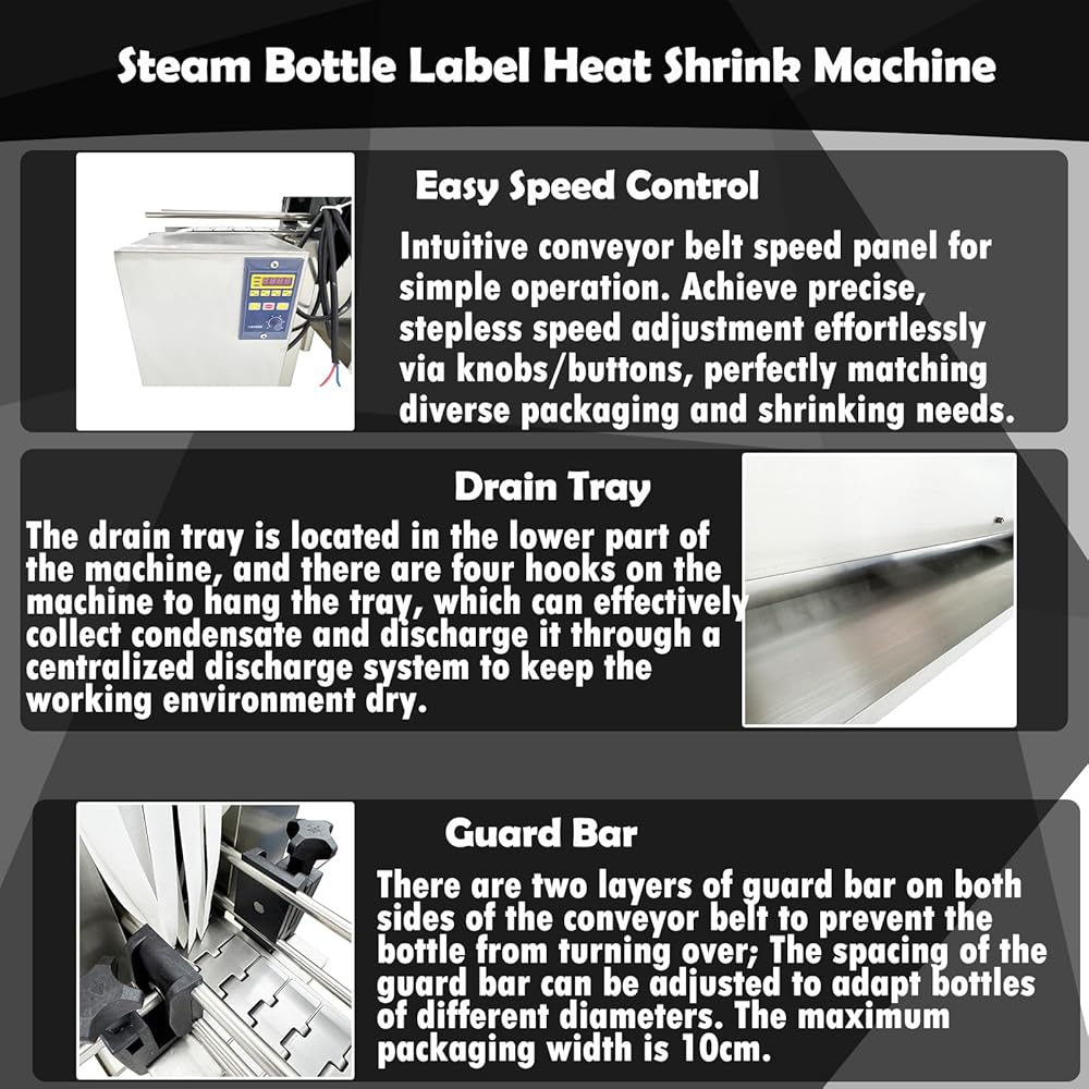 Steam label shrink machine has the advantages of high thermal efficiency, uniform temperature in the shrinkage chamber, stable and reliable performance, accurate temperature control. The packaged items are heated more uniformly, the surface is more flat after packaging, not easy to crease.